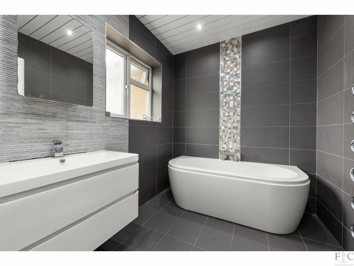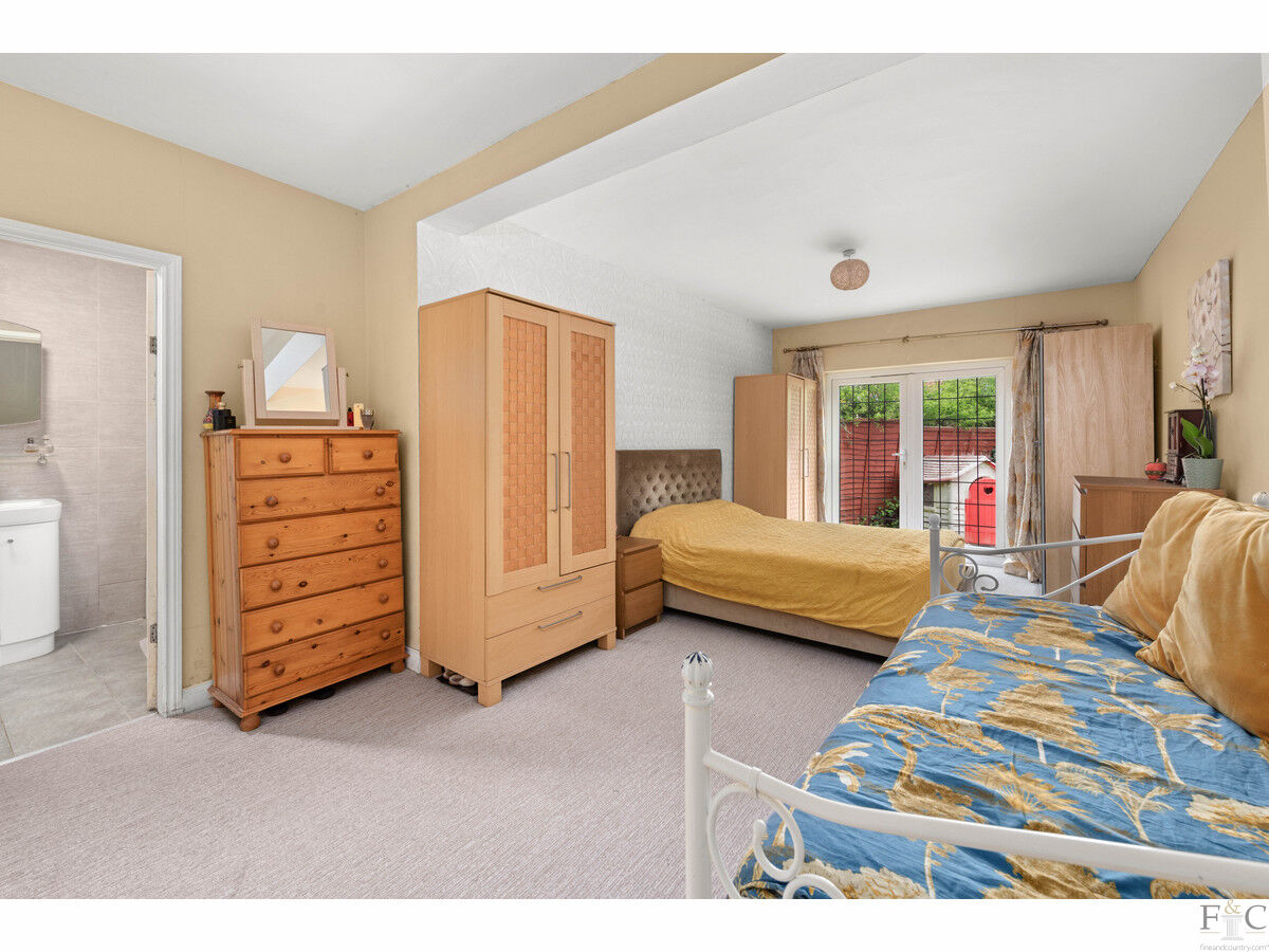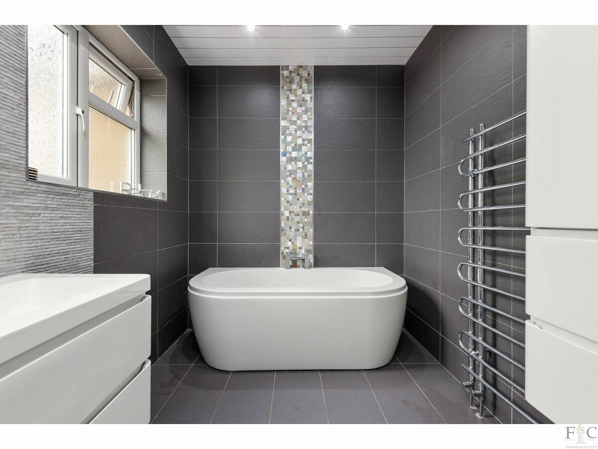 The master bedroom is a great size, with French doors opening out to the rear garden to make the most of the natural light throughout the day. The décor is neutral and light whilst the walk-in wardrobe will house the most well-dressed of us. The en suite bathroom adds an extra level of luxury to this peaceful spot.
