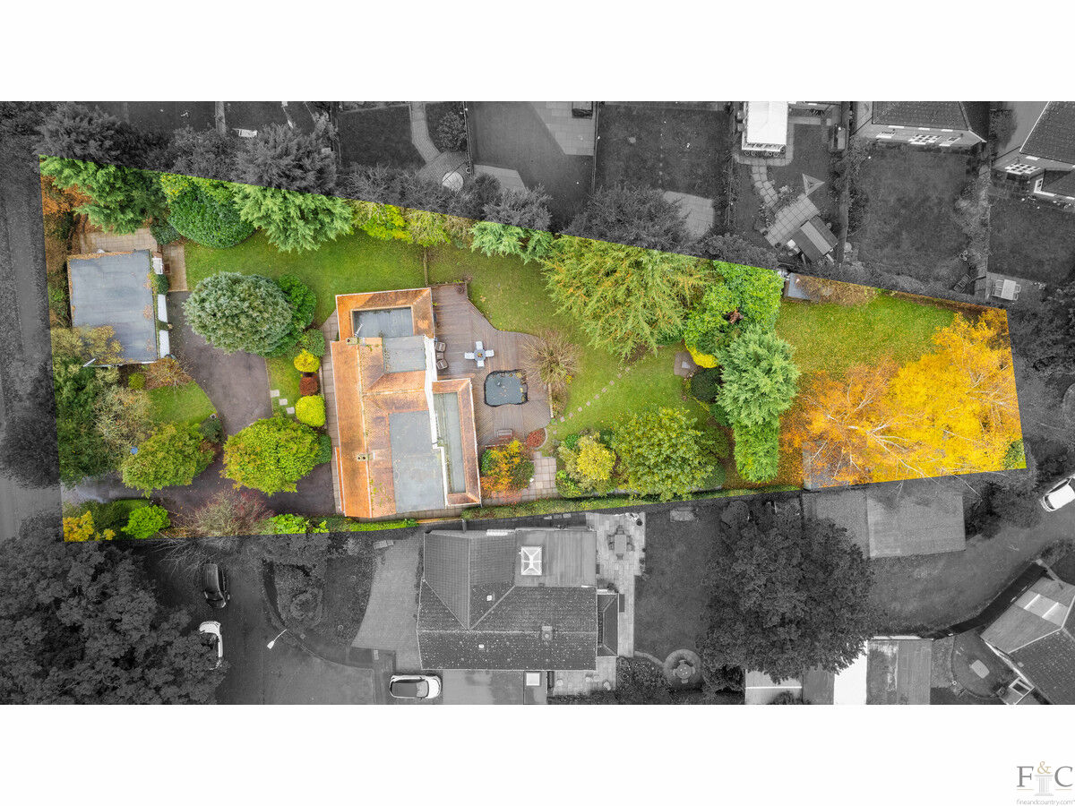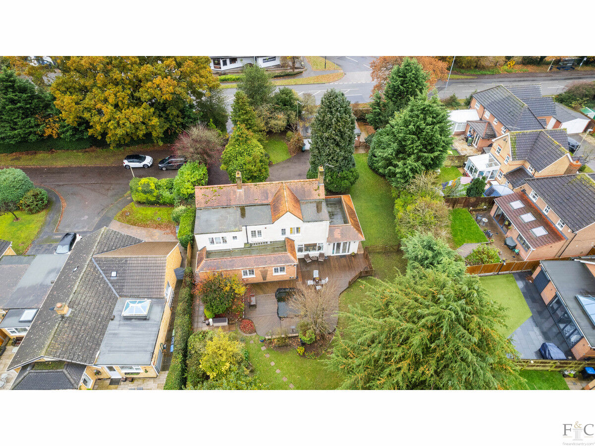 This property is surrounded by a wealth of established shrubs, trees and plants of all kinds creating a bespoke garden and privacy throughout the seasons. A decked area closest to the house has a pond and water feature, with lawn and flower beds meandering past a large hedge into which another separate space opens to reveal a further lawn and two detached summer houses. It is a valuable and generous component, which perfectly frames this bespoke home.