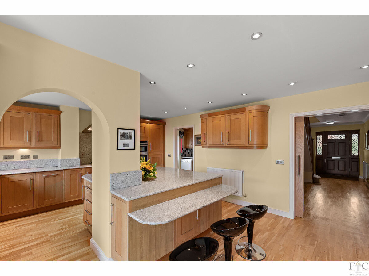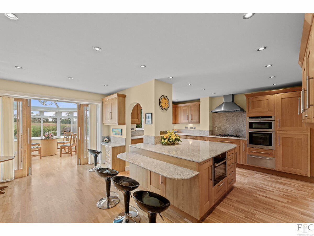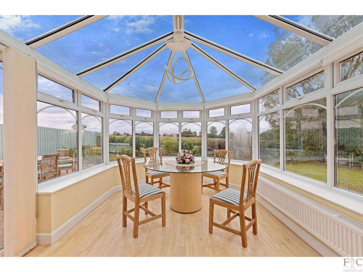 Beyond the kitchen, the utility room offers functional space and ample storage. Meanwhile, the adjacent conservatory acts as a lens to the garden, capturing its beauty from every angle and offering an idyllic setting for relaxation.