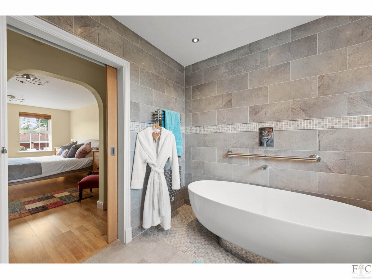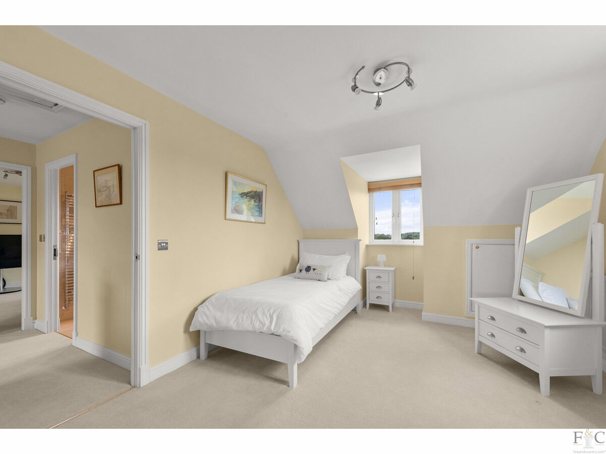 Bedroom 2: Currently employed as a dressing room, this space offers stunning rear views and an ensuite equipped with a top-of-the-line shower.