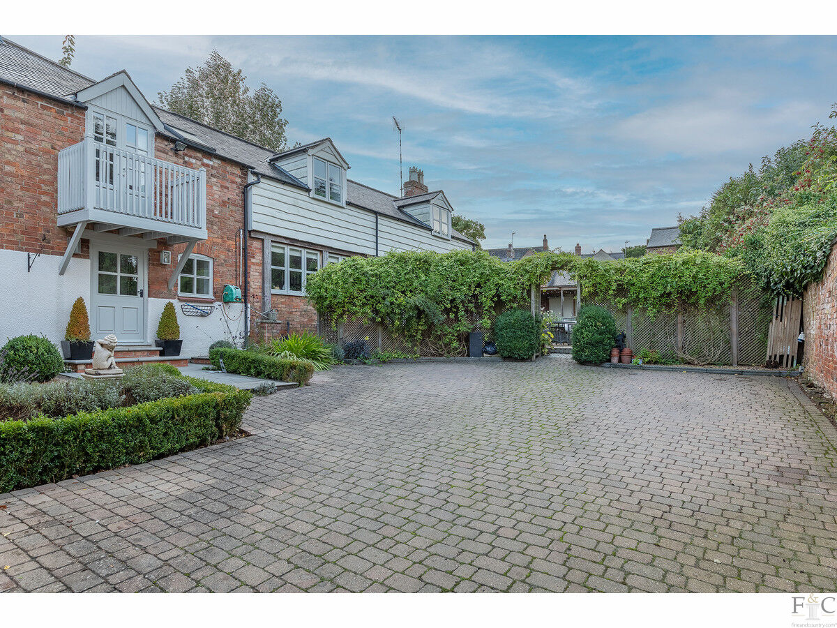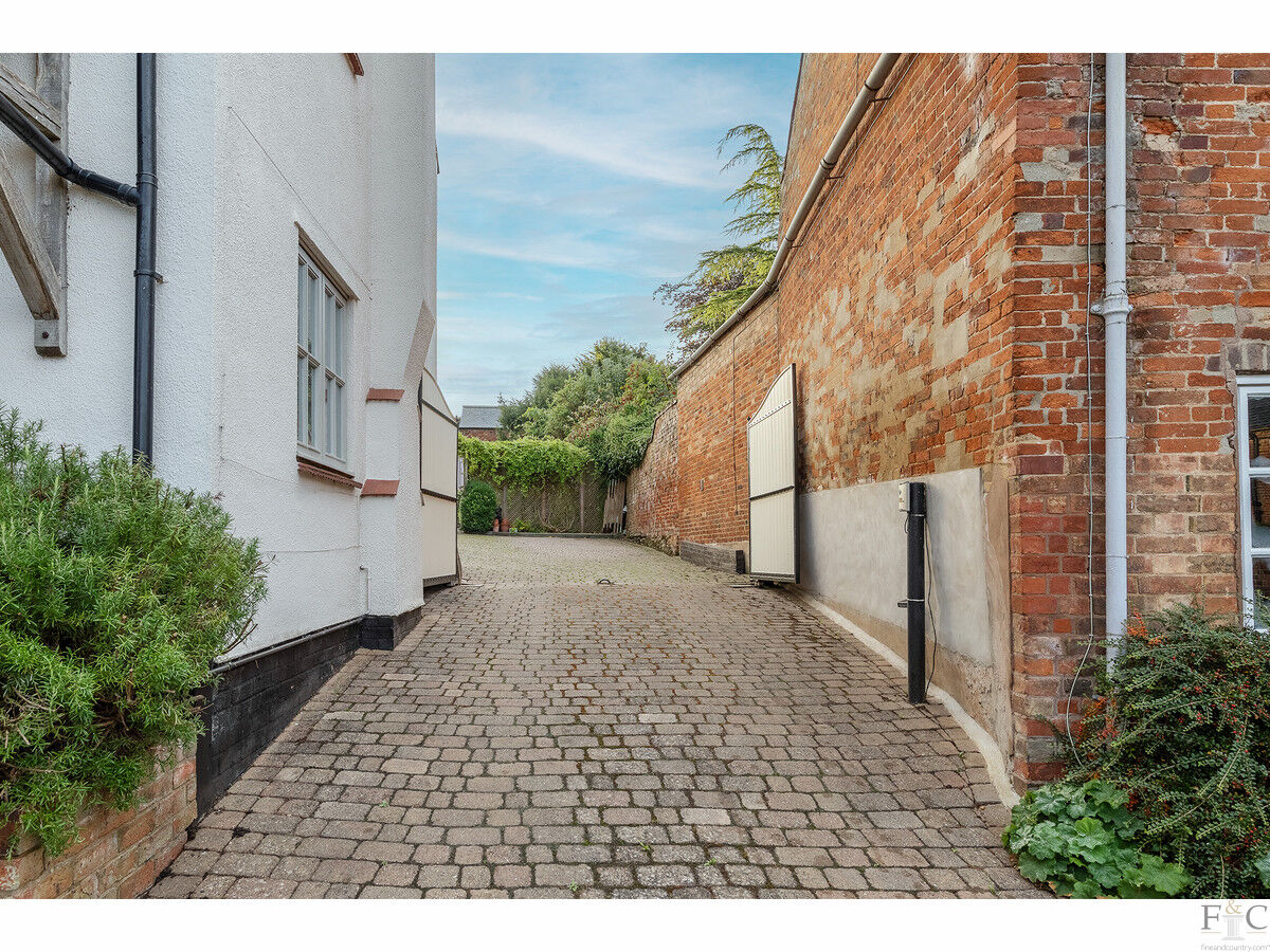 Outside, a block-paved driveway to the side of the property provides off-road parking, with electric timber gates leading to secure parking for 2-3 additional vehicles.