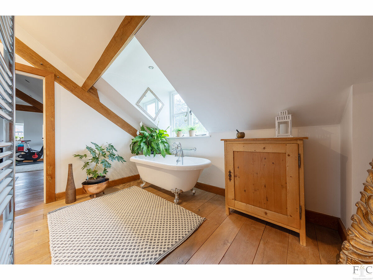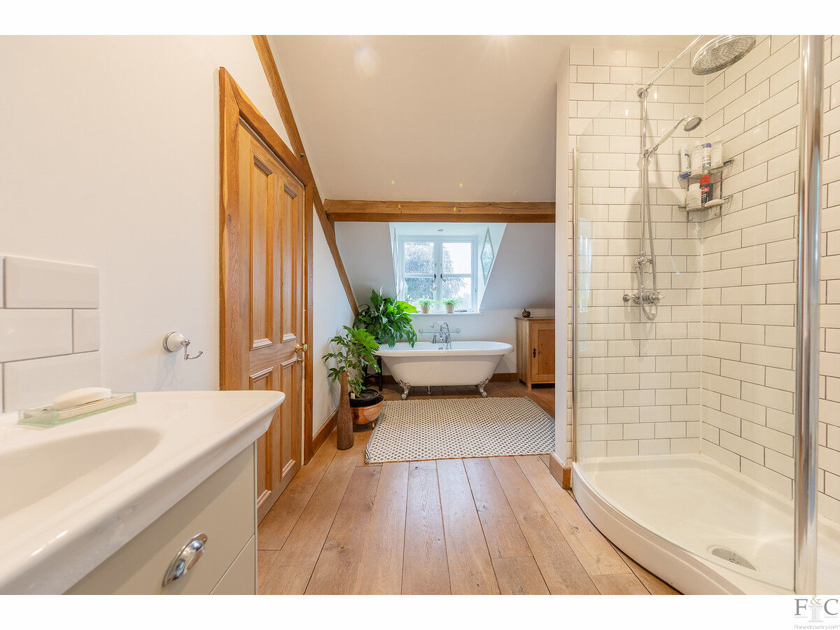 At the front of the house, two generous double bedrooms provide comfortable accommodation, both served by a family bathroom and a separate shower room.