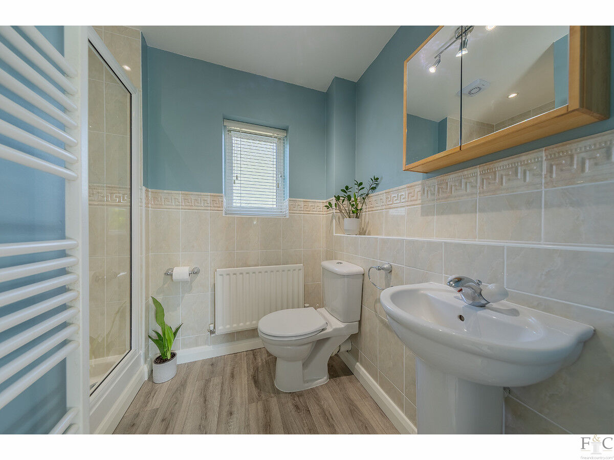 These rooms are within a few steps of a family bathroom that is fitted with a shower over a bath, heated towel rail, basin and toilet. This provides a total of four bathing facilities in this lovely property. All the facilities have been fitted and maintained to a high standard with contemporary white bathroom fixtures, and decorative floor and wall tiles to compliment the spaces.