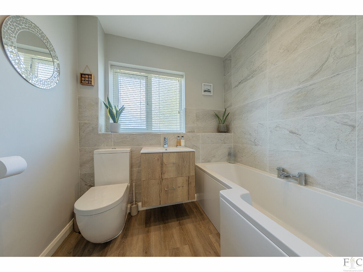 There are five bedrooms in this property and all of them have been fitted with wardrobes and carpets. The master suite above the garage is particularly large. It and bedroom two have private ensuite facilities, including walk in showers, heated towel rails, toilets and basins, with tiling to floors and walls in contemporary styles. The remaining three bedrooms are distinctive in shape and size, overlooking the rear garden or driveway. They are accessible from the spacious galleried landing.