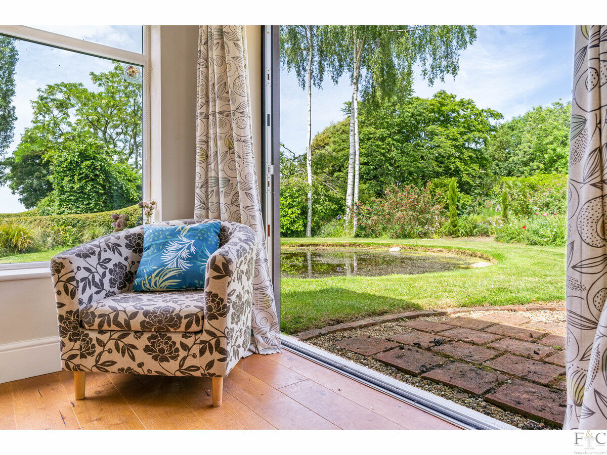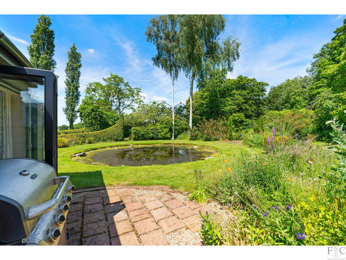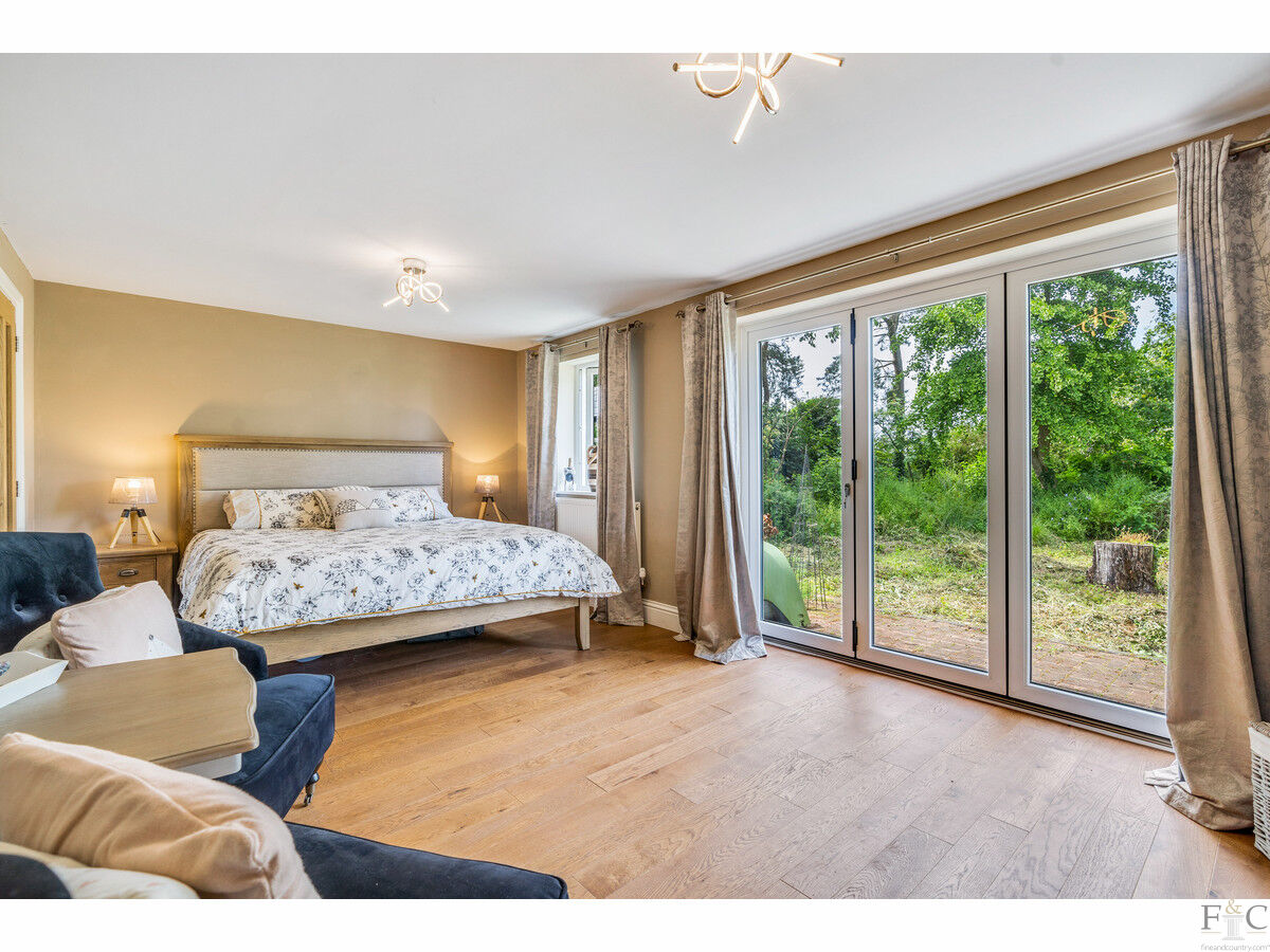 This has a feature fireplace, log burner and stunning views into the garden. Oak flooring is throughout this room, the dining room and master bedroom. The dining room also features bi folding doors leading onto an extended patio and into the garden. As previously stated, light and airiness is a predominant feature due to the statuesque windows: these rooms are impressive. In all weathers, the magnificence of the outside - while inside - can be fully appreciated. How wonderful to be able to gaze out towards the silver birches reflected in the pond and enjoy the company of a few or throw back the doors and entertain on a grander scale. The choice will be yours!