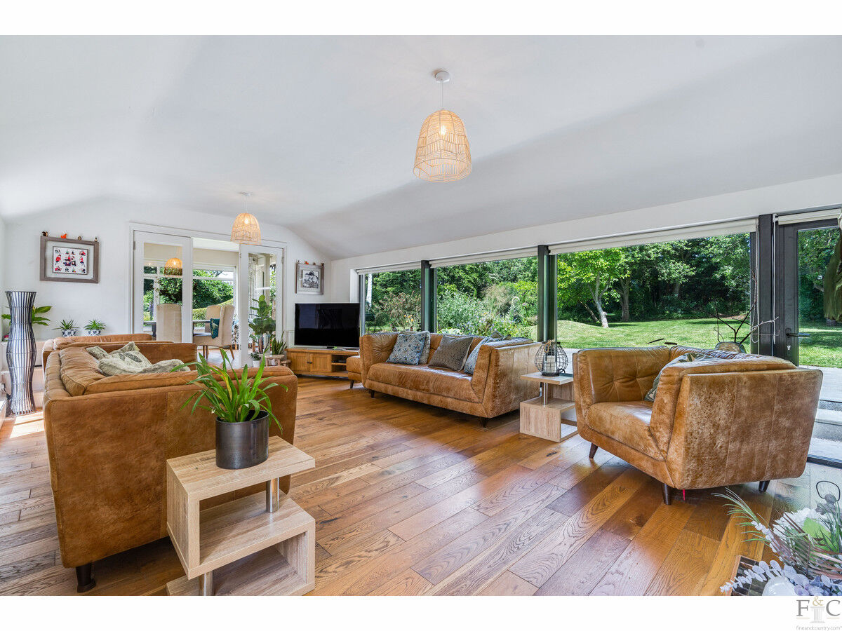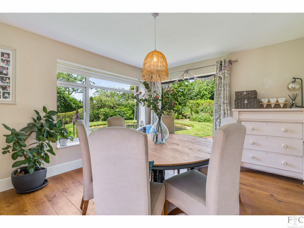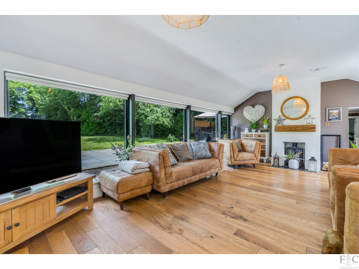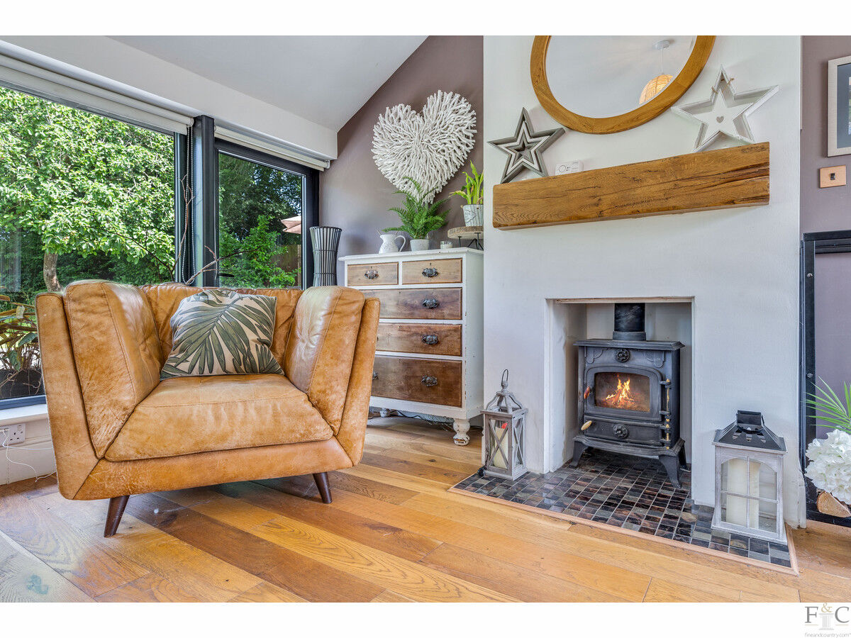 This has a feature fireplace, log burner and stunning views into the garden. Oak flooring is throughout this room, the dining room and master bedroom. The dining room also features bi folding doors leading onto an extended patio and into the garden. As previously stated, light and airiness is a predominant feature due to the statuesque windows: these rooms are impressive. In all weathers, the magnificence of the outside - while inside - can be fully appreciated. How wonderful to be able to gaze out towards the silver birches reflected in the pond and enjoy the company of a few or throw back the doors and entertain on a grander scale. The choice will be yours!
