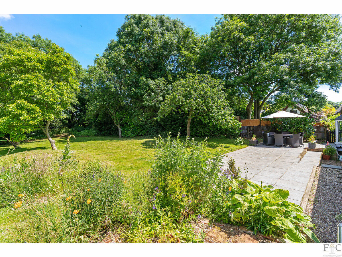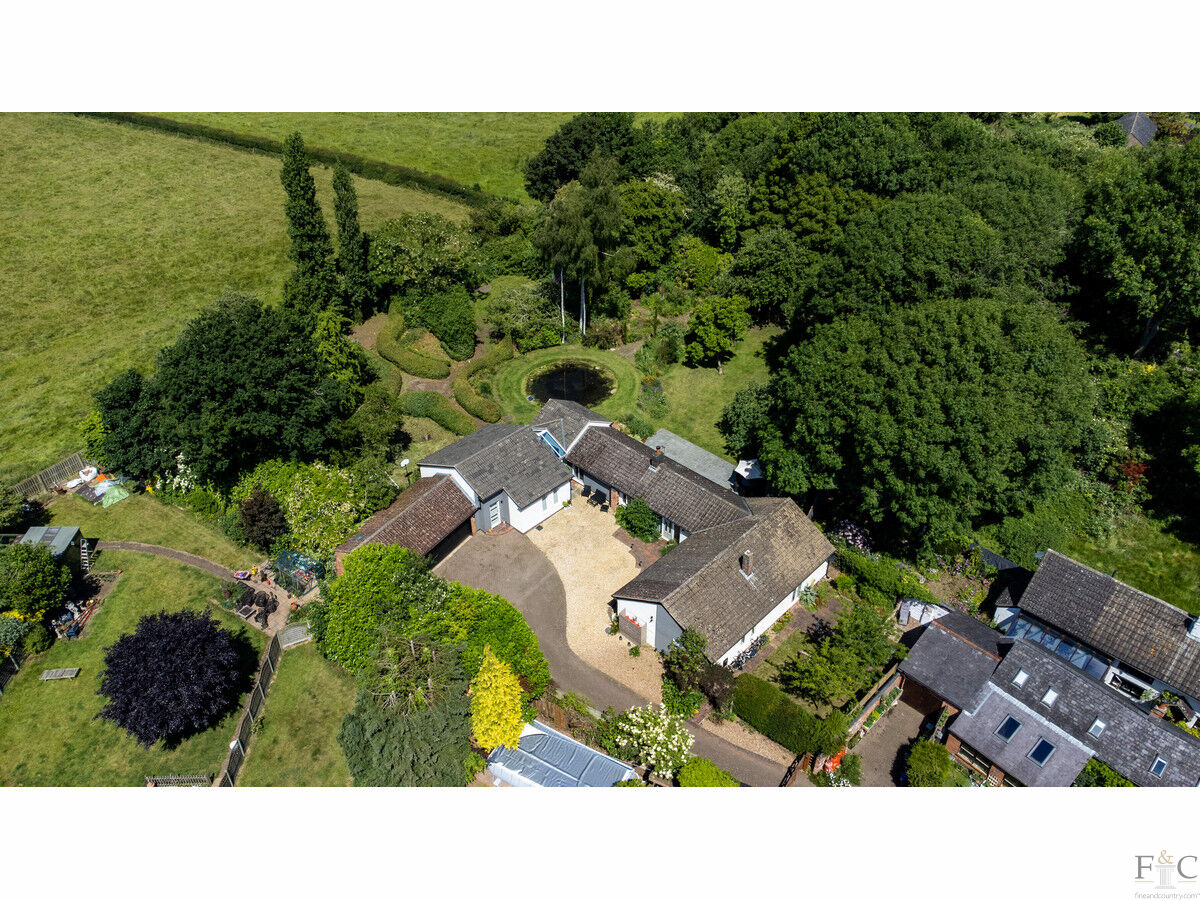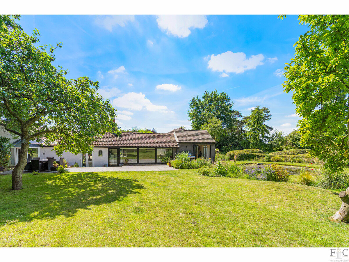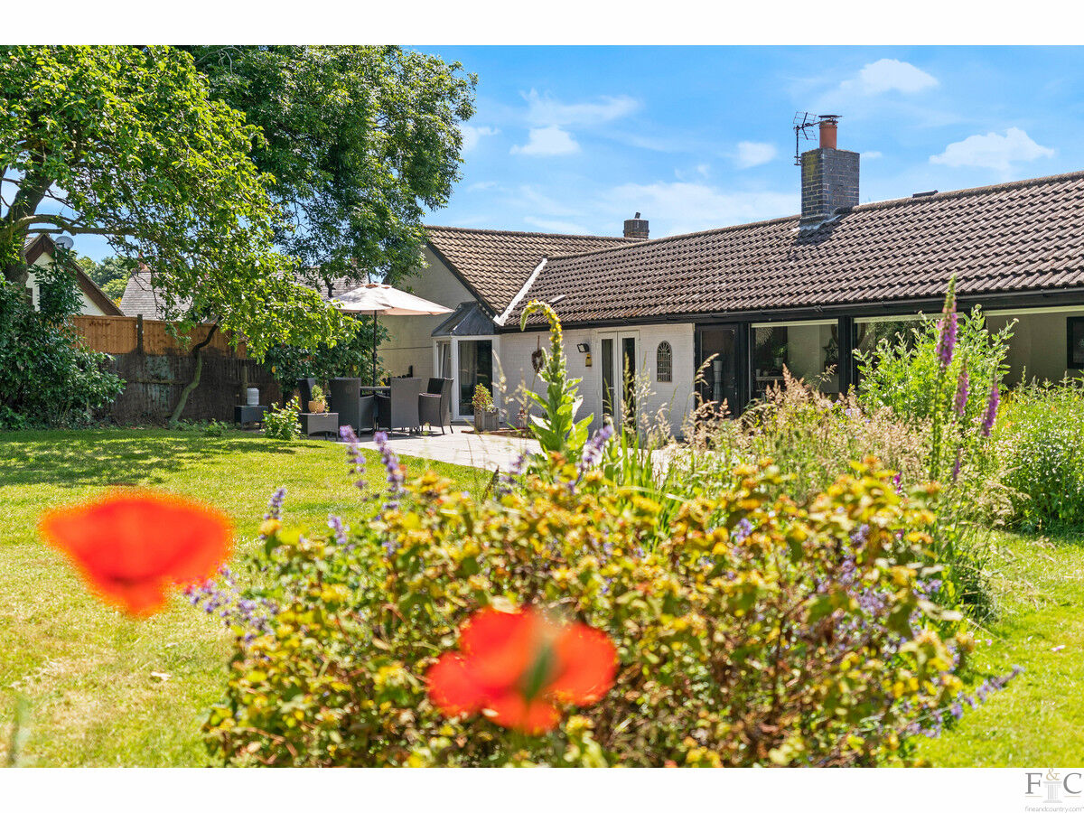 This property exudes quality, strength of design and attention to detail from the very first glance. When approaching from Hall Lane this bungalow is framed with mature trees and shrubs, giving it an air of privacy and beauty that leads the eyes down the curved but widening private drive. Here, the spacious herring boned patterned, blocked and shingled frontage leads to Orchards; a most desirable and highly original home.