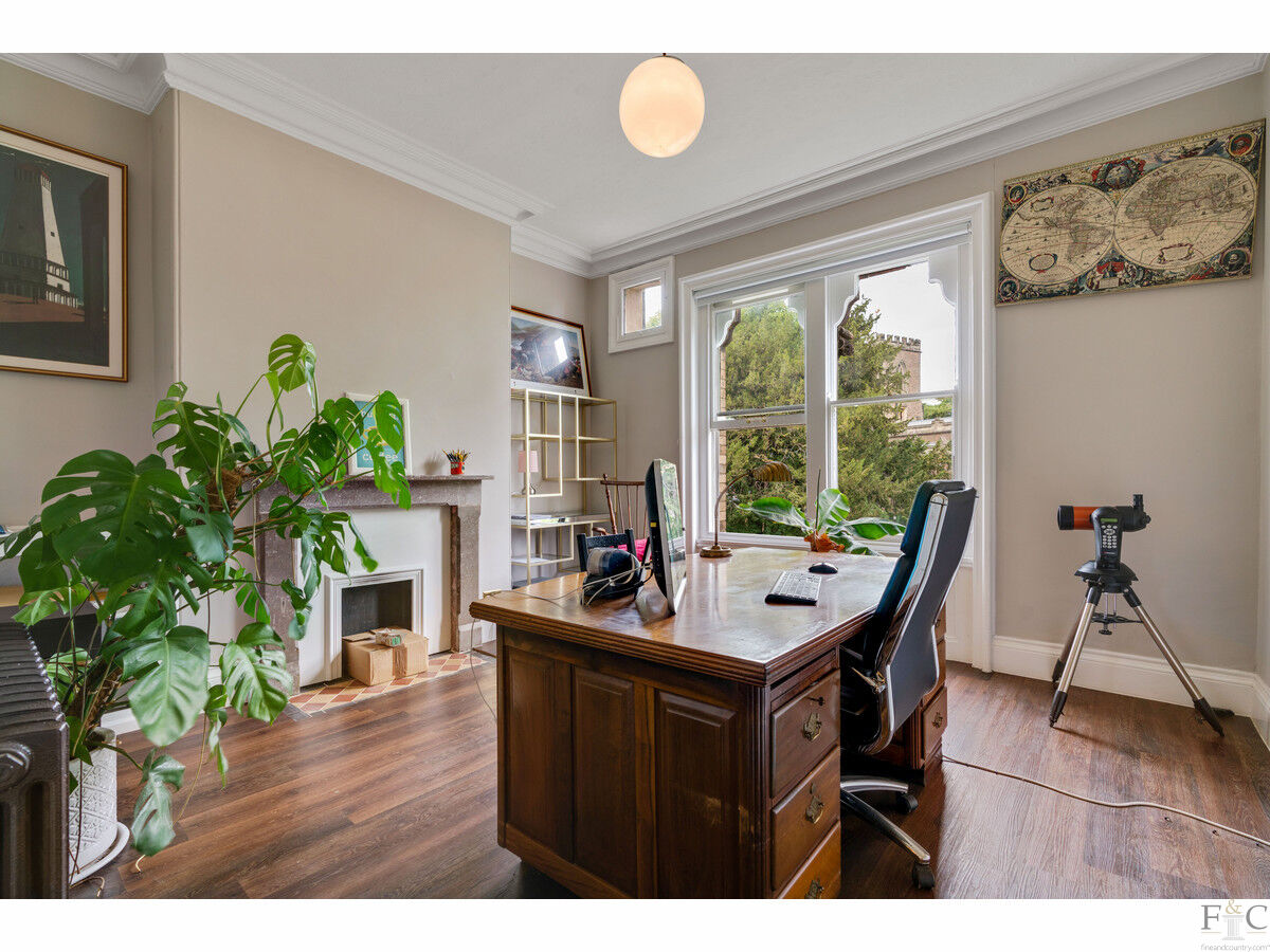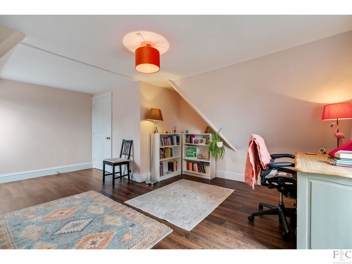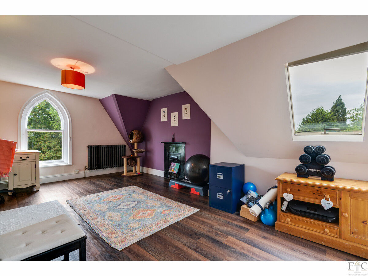 Bedroom four also has that bright, airy feel and beautiful views to greet you. The natural light brought by dual aspect windows is perfect for a child’s bedroom, nursery or home office and those period features just keep coming – the fireplace is not to be missed!