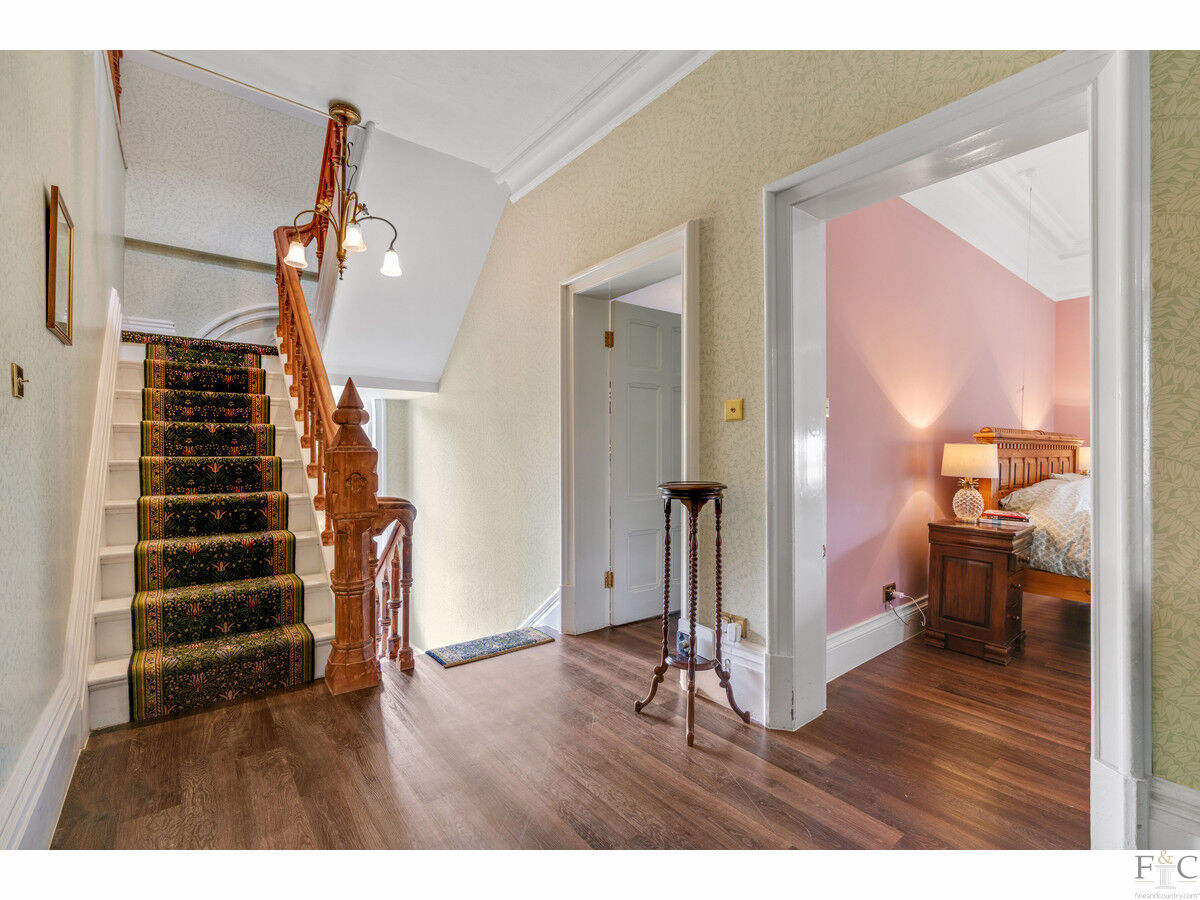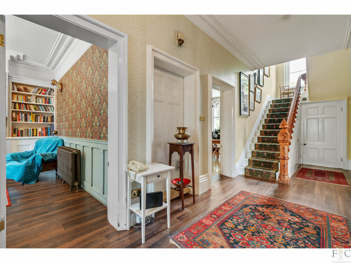 Step into the foyer and hall, which lead to the stunning original wooden staircase, sitting room, dining room, living room, WC and fabulous kitchen/dining room full of surprise features. The broad and bright entrance hall, where beautifully retained and restored original features instantly impress. Karndeen floors flow throughout, giving a sense of continuity and classic style.