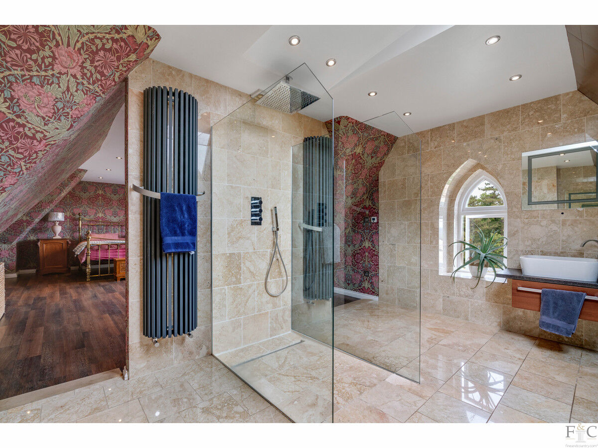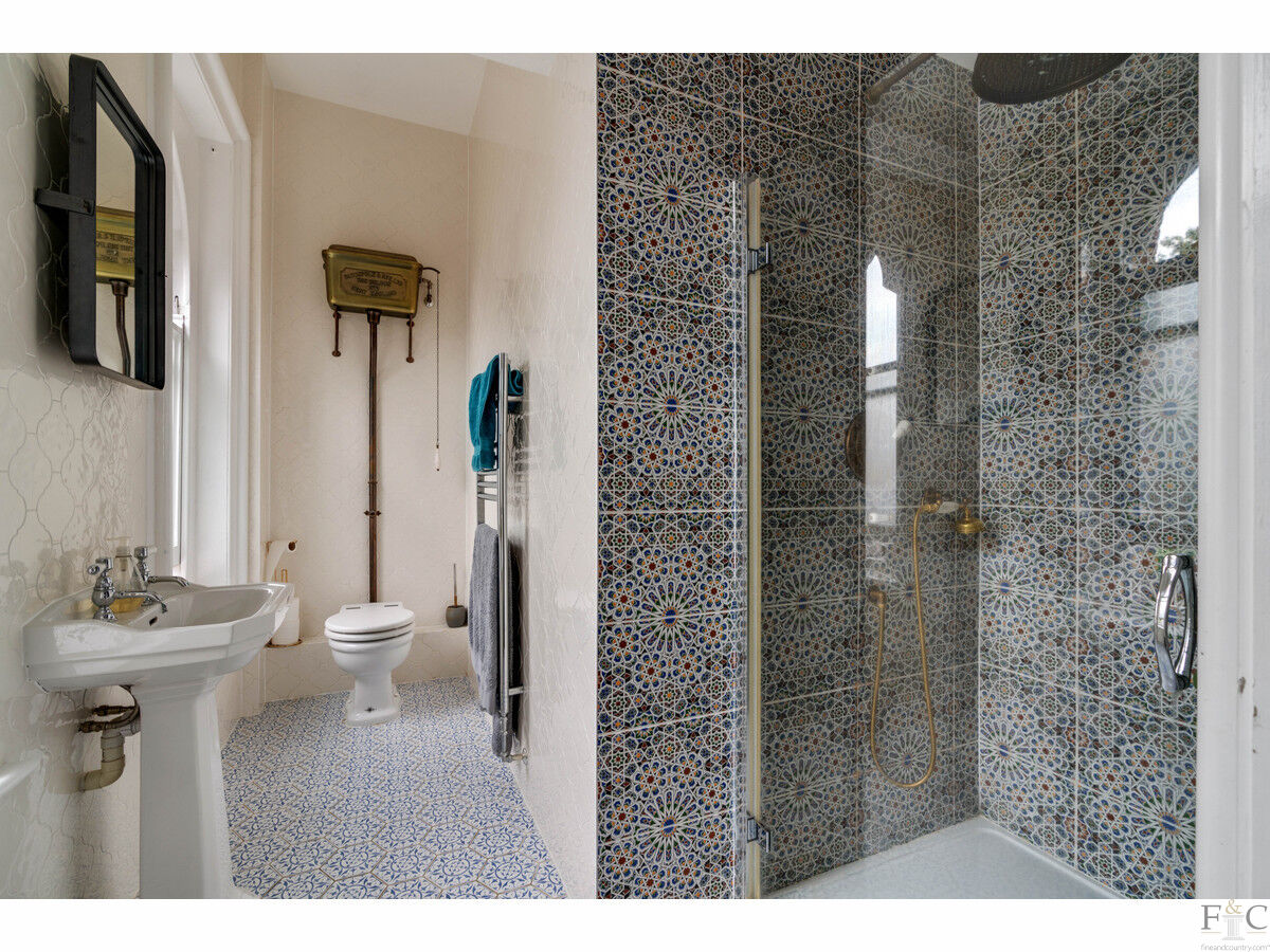 The well-appointed, Victorian-styled Jack and Jill family bathroom on this floor can keep up with the busiest of mornings with style. There is ample storage for all the associated items and separate shower to ensure all needs are met with ease - and the freestanding bath placed perfectly in front of the large sash window means views for days from the luxury of a bubbly tub.