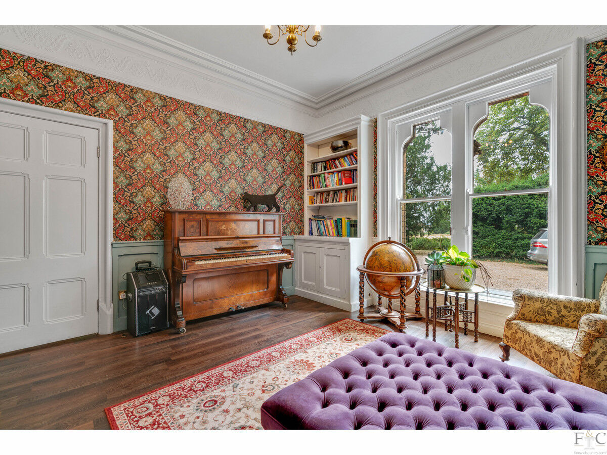 Step outside to appreciate the peace and tranquillity of the Old Vicarage, nestled within its grand plot and flanked by rolling fields. Relax on the patios or stroll across the lawns, bordered by ancient trees. There are lots of great spaces to relax and entertain and the Victorian-style glass house complete with kitchen garden is primed and ready for a wealth of gardening Good Life. A set of fully restored red brick outbuildings provide practical storage solutions and the garage, whilst the gravel driveway has room for a fleet of vehicles. The fenced boundaries with bordering established trees give a real sense of exclusivity and privacy - just the ticket for escaping from the hustle and bustle of daily life.