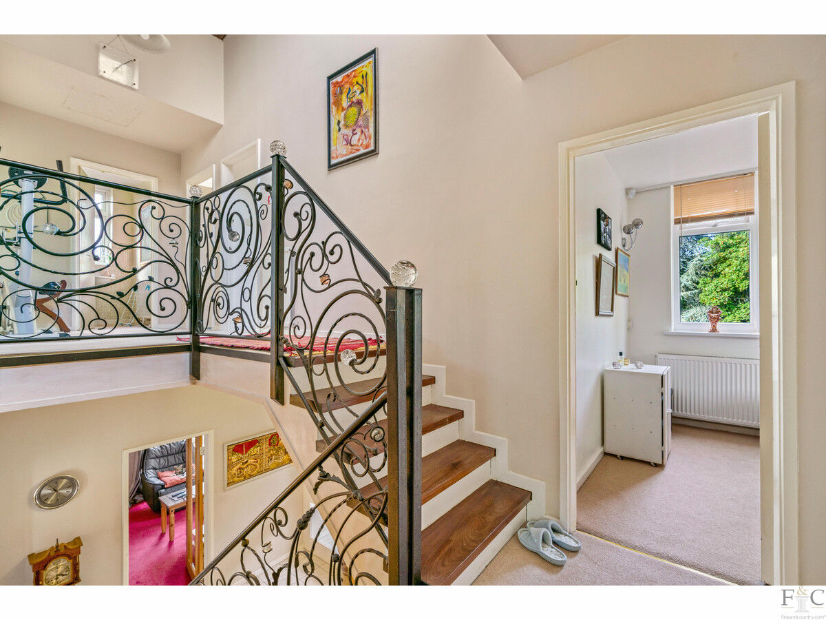 The intricate staircase carries on the feeling of light and space so evident in this property, and the landing, with doors to four of the bedrooms and family bathroom, carries on this trend.