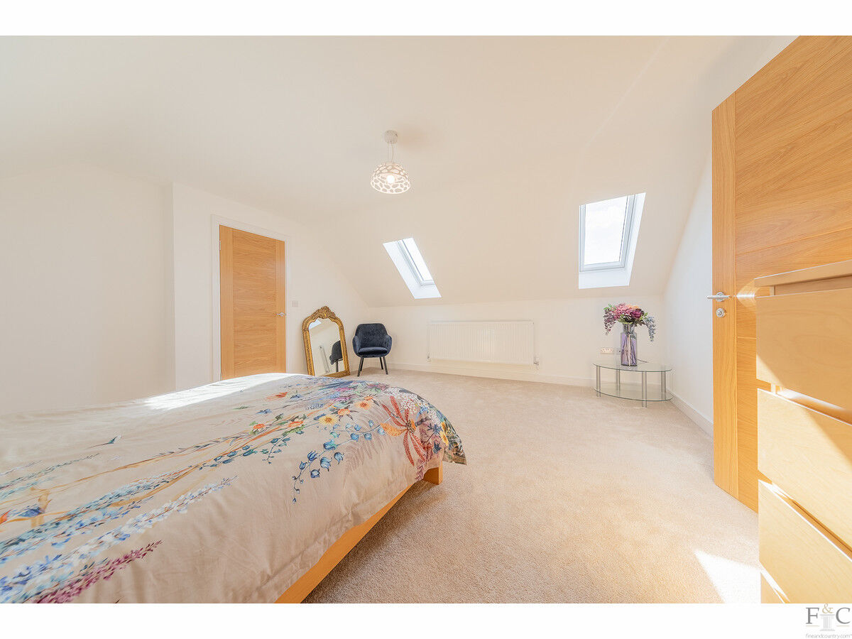 Situated at the back of the house, the spacious primary suite consists of a large bedroom, separate dressing room and a luxurious private ensuite shower room. It has double doors opening onto a Juliet balcony from which to admire the views. The secondary bedroom also has its own ensuite and Juliet balcony. There are two further bedrooms of generous proportions on this floor and a family bathroom. The family bathroom with bath, shower, basin, and toilet, can be entered from the landing. On the second floor, two large bedrooms, one with its own ensuite complete the selection of beautifully decorated rooms, coordinated throughout with carpet and subtle, neutral colour schemes. The final floor has roof windows, which allow sunlight to pour into the spaces or provide star gazing opportunities at night.