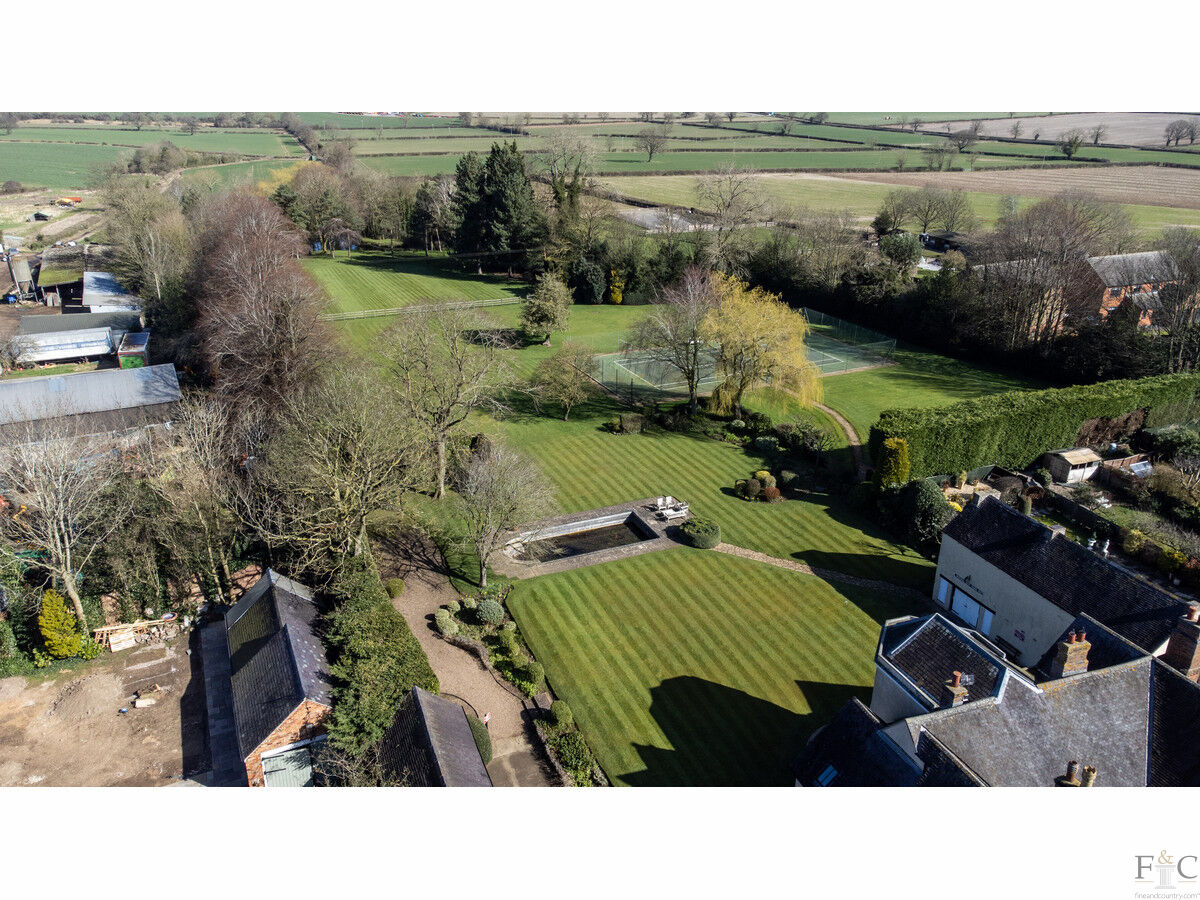 The large and lovely house is ideal for a family with 4.5 acres of lush gardens, woodland, paddock land complete with a lake, ornamental pond and tennis court.