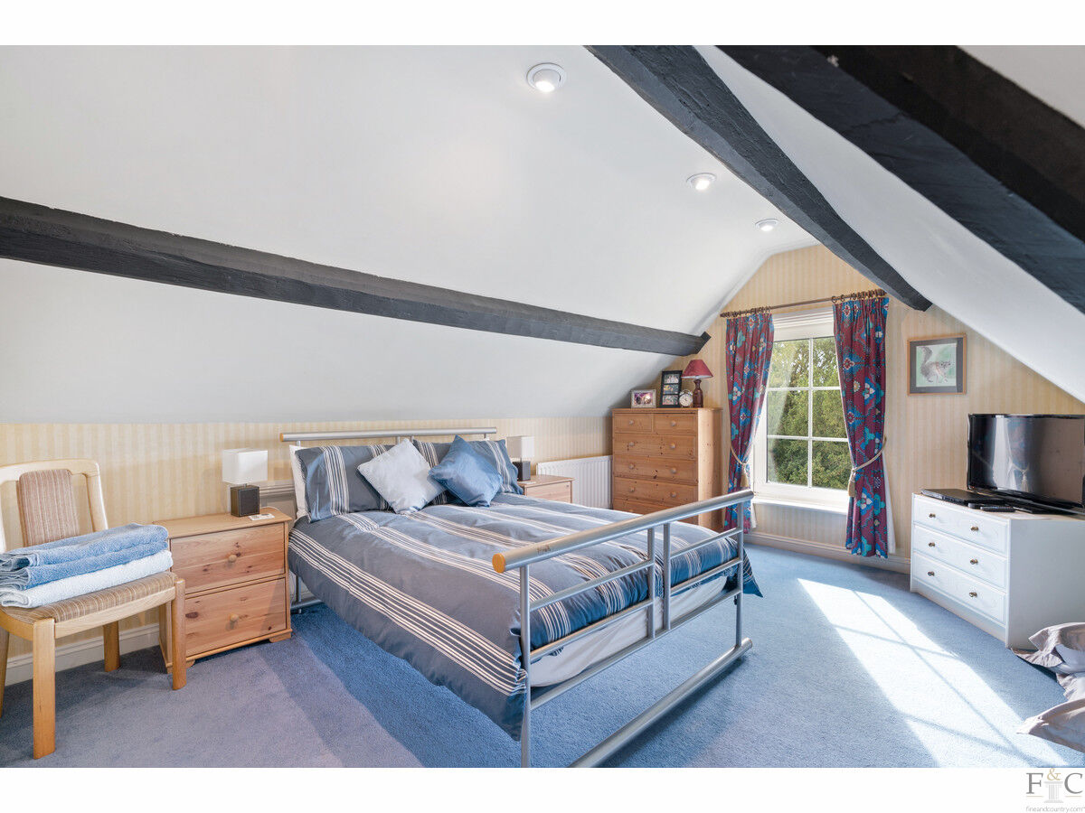 On the second floor is a lovely beamed bedroom, 15x15ft, under the eaves and complete with en-suite bathroom.