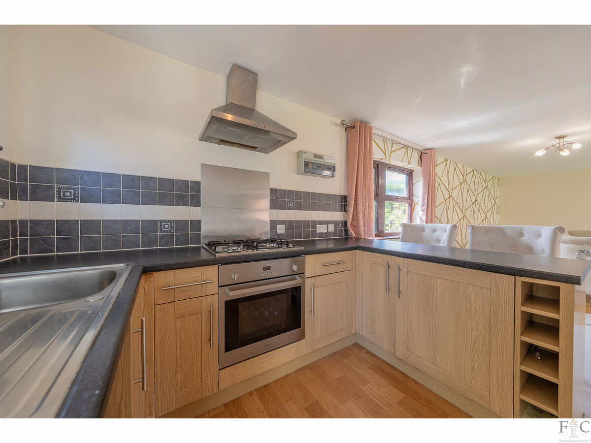 Set privately at the rear of the landscaped garden is a detached, three-bedroom annexe, ideal for multi-generational living or lucrative rental income. Accessed via a charming garden pathway, French doors open into a spacious open-plan kitchen/living room with wall and base units, a gas hob, oven, and sink.