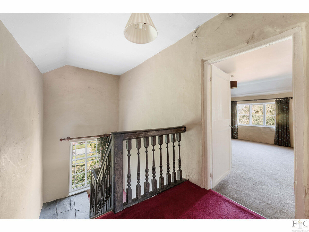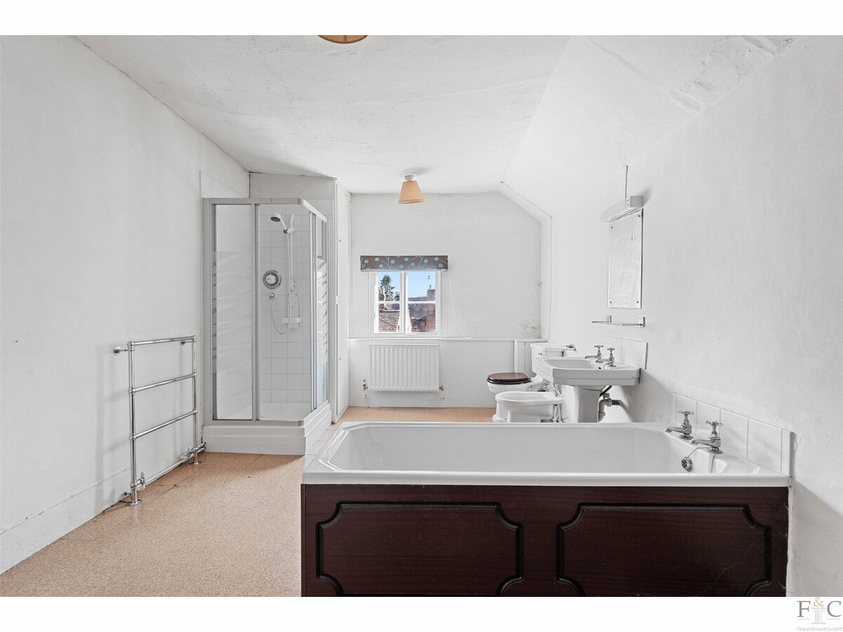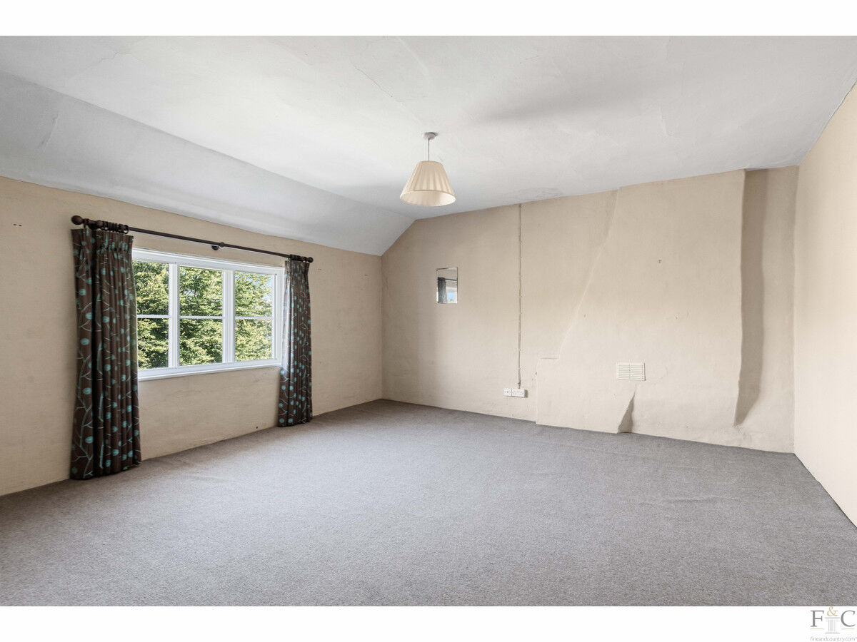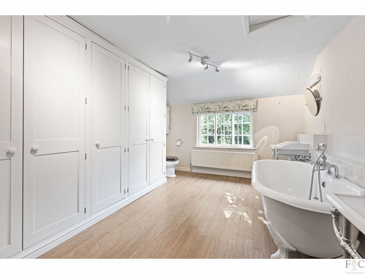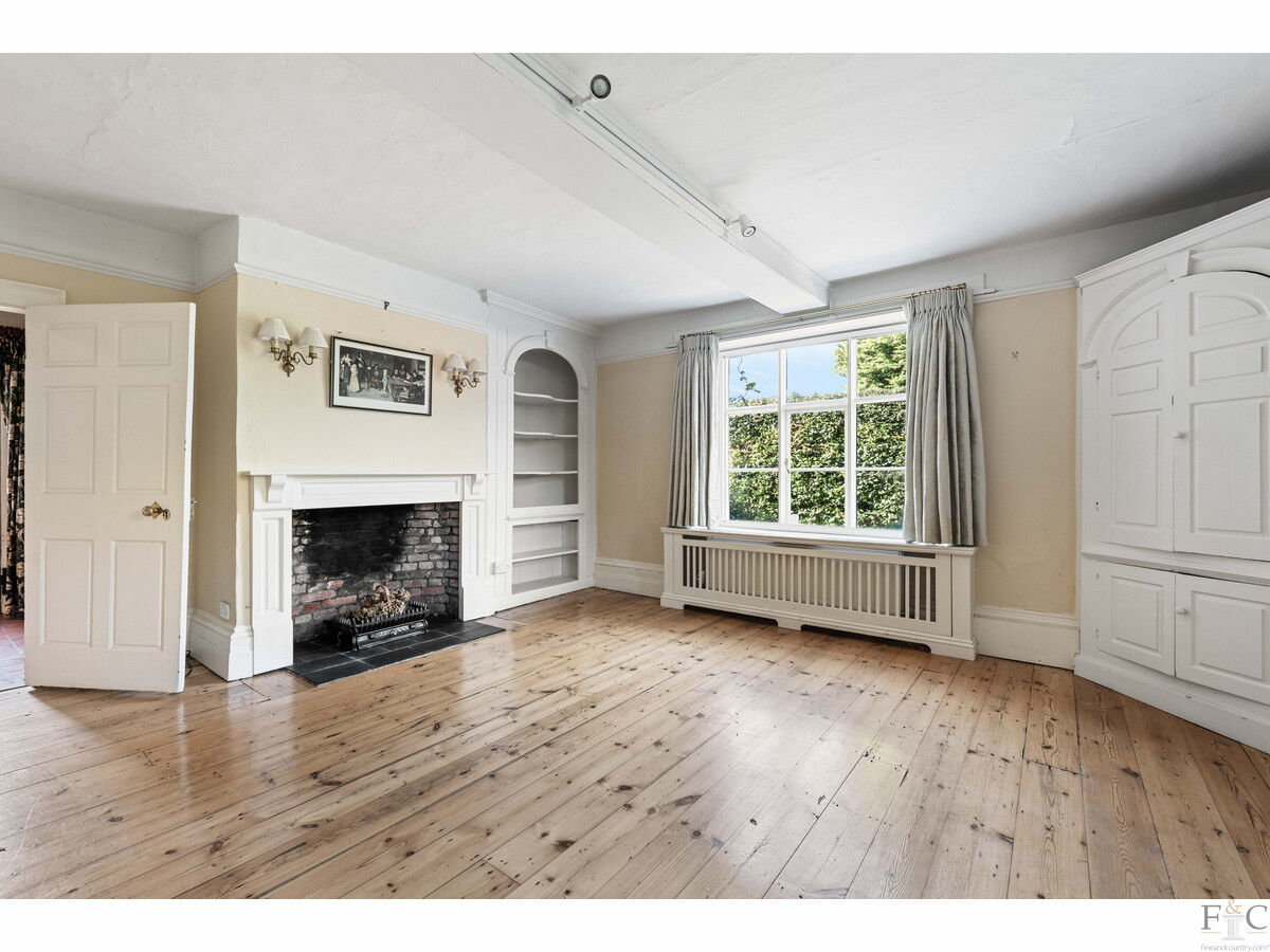 The family bathroom and separate toilet are next door, with bath under the window and a walk-in shower with basin. Further along the landing, the second bedroom has views of the garden and an en-suite comprising of walk-in shower, basin and toilet. These rooms are over the former service wing and there remains three bedrooms to the front of the house, all quite individual: one has a study, others have fireplaces and fitted storage.