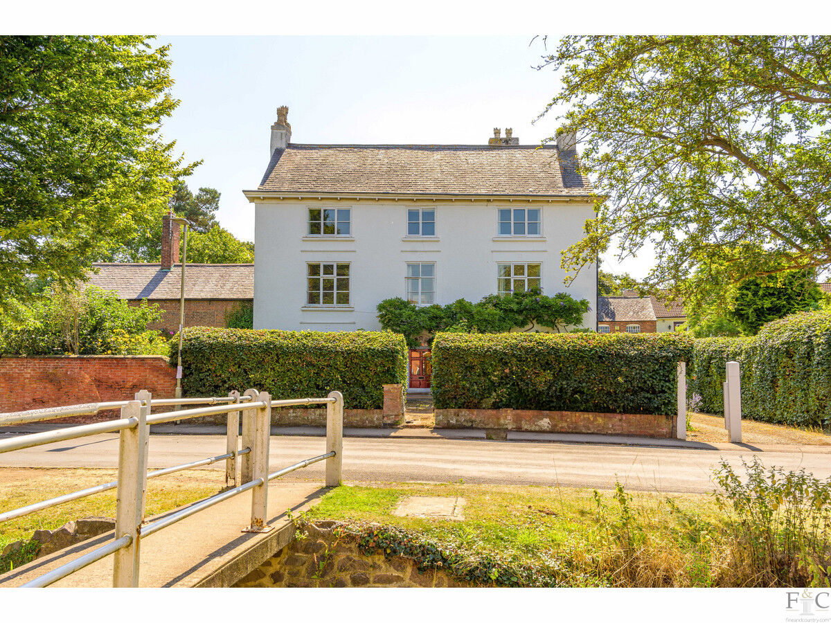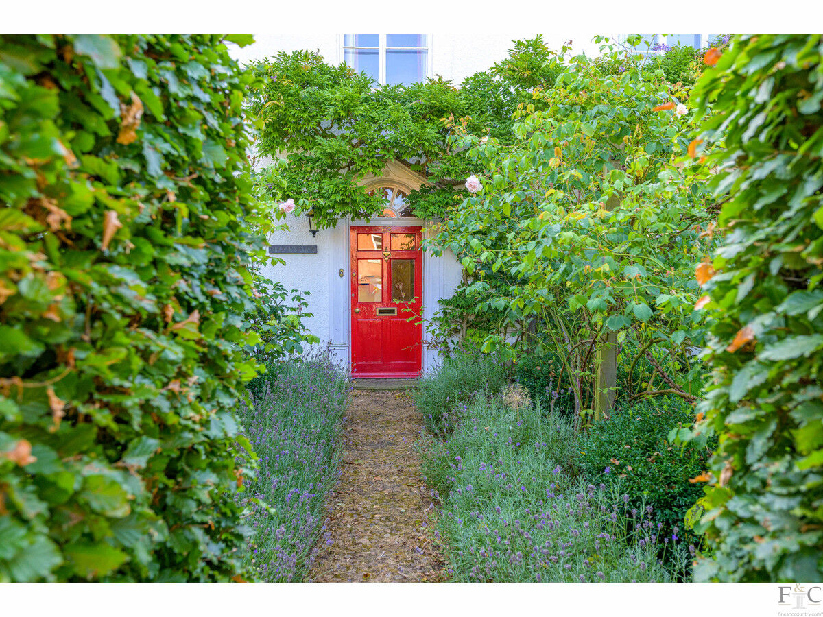 The front of the house is the image of a child’s Georgian styled doll’s house and viewed from the bridge opposite - where its namesake flows through banks of trees - the scene is picture perfect. A front garden is bordered by a hedge, with lawns and established planting on each side. Centrally, a garden gate opens onto a pathway, over spilling with lavender, to lead the visitor to the front door.