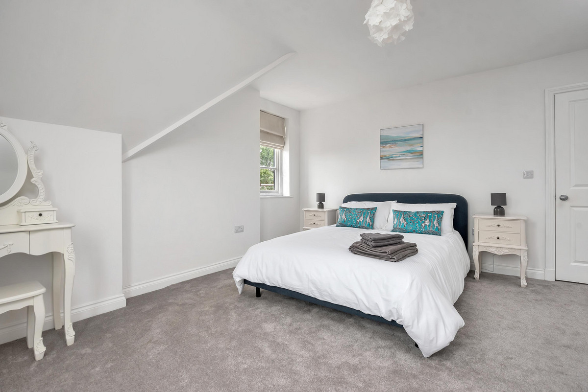 On the first floor is large bedroom, study and spacious family bathroom. Bedrooms two and three occupy the second floor, one of which features modern en suite.
