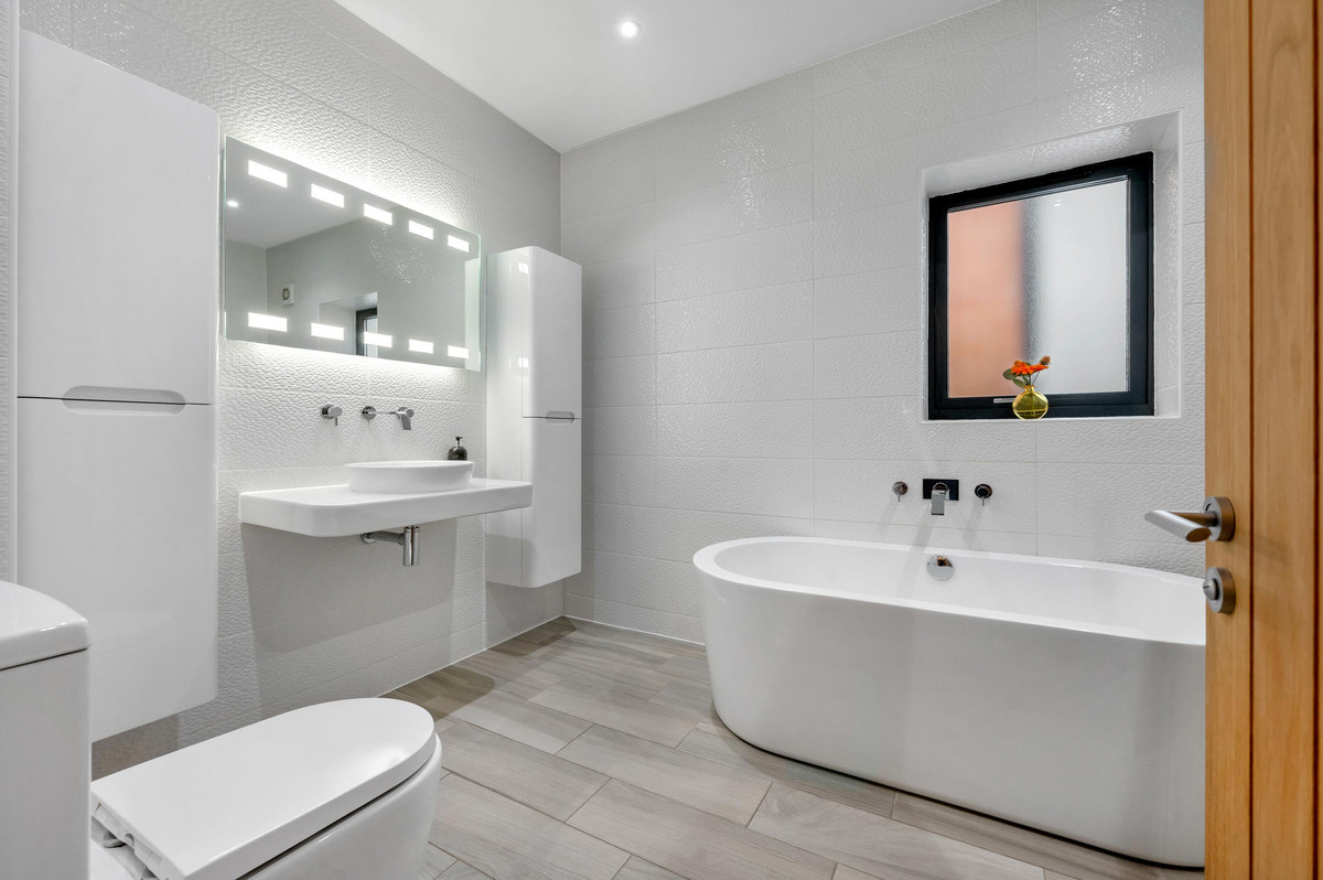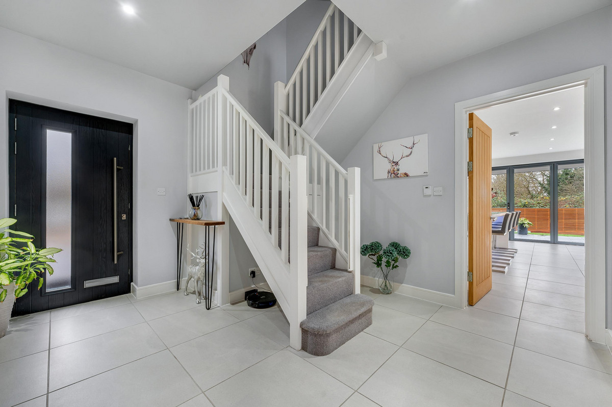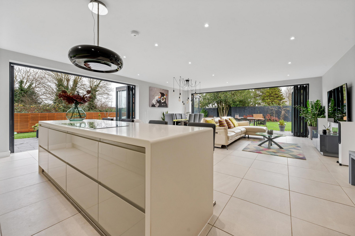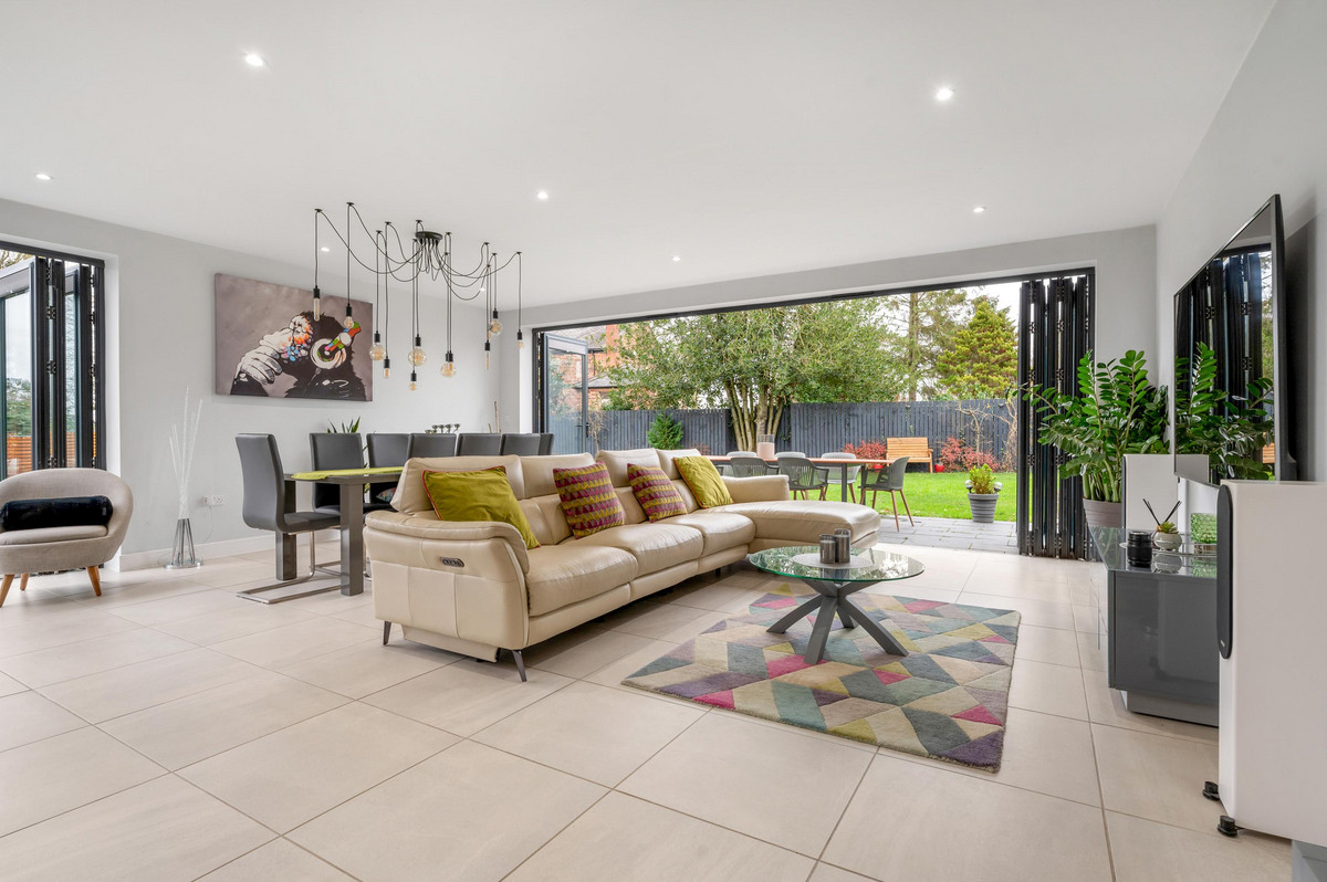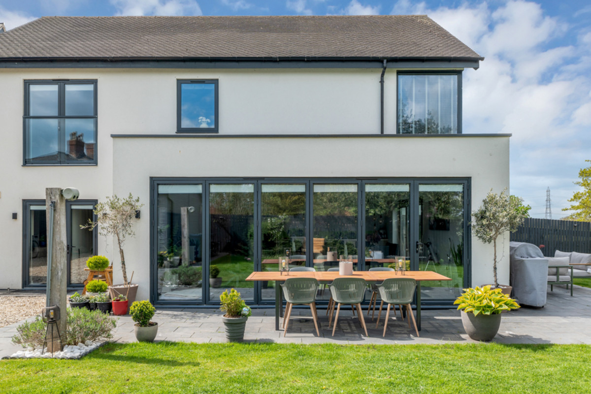 Backing onto open countryside, No.4 The Sidings is a refreshingly modern home completed in 2016 to an individual design. The property is flooded with natural light through large, aluminium windows and bi folding doors and high ceilings which extend throughout create a spacious feel. A large open plan living kitchen which spills out onto a private, wrap around garden is the centre piece to this stylish home which has been designed for entertaining. A large hallway, separate study, utility and cloaks/WC complete the ground floor accommodation. On the first floor are four good size bedrooms, walk-in wardrobe, stylish ensuite and four-piece family bathroom. A gravel drive provides hardstandiing for numerous vehicles and access to detached double garage.