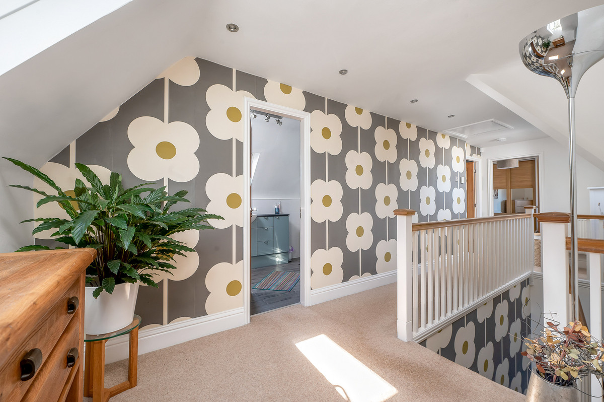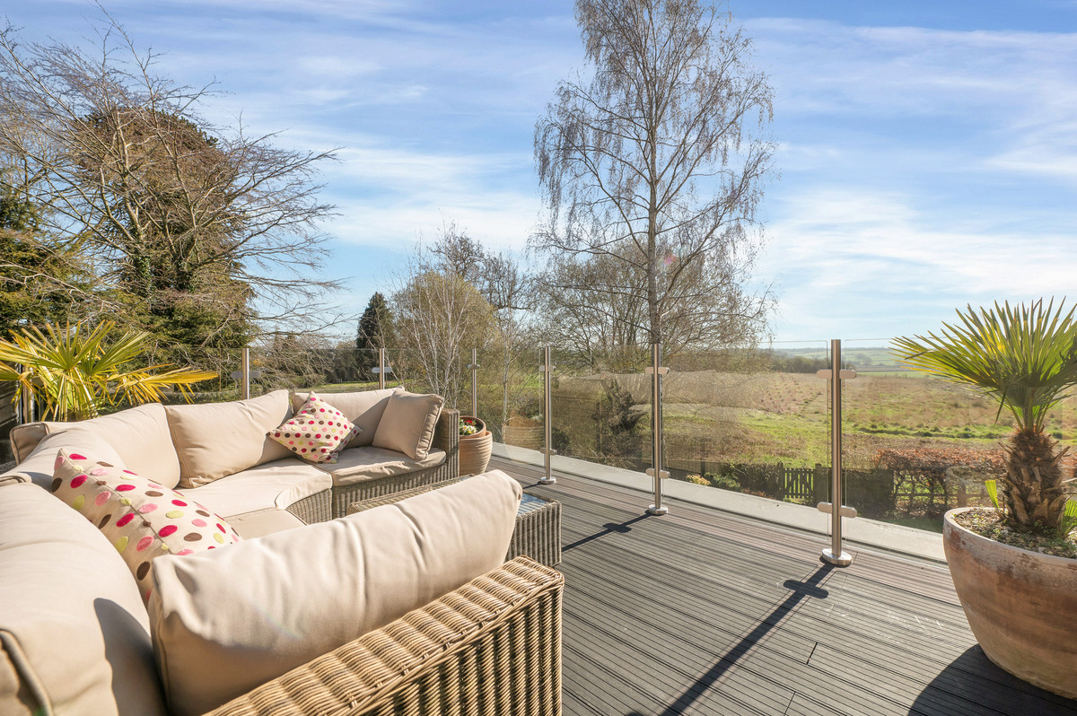 A spacious L shaped landing on the first floor provides access to four double bedrooms and spacious family bathroom. Bedroom one with high ceiling has a large oak framed picture window, taking full advantage of the surrounding, rolling countryside. Further features of this impressive suite include an integrated audio system, walk-in wardrobe, stylish ensuite (refitted 2019) and large, walk-on balcony with glass balustrade. Two former bedrooms have been combined, creating a larger fourth bedroom with two Velux windows. The family bathroom (refitted 2019/20) has a four-piece suite complete with corner bath, separate shower and heated mirror.