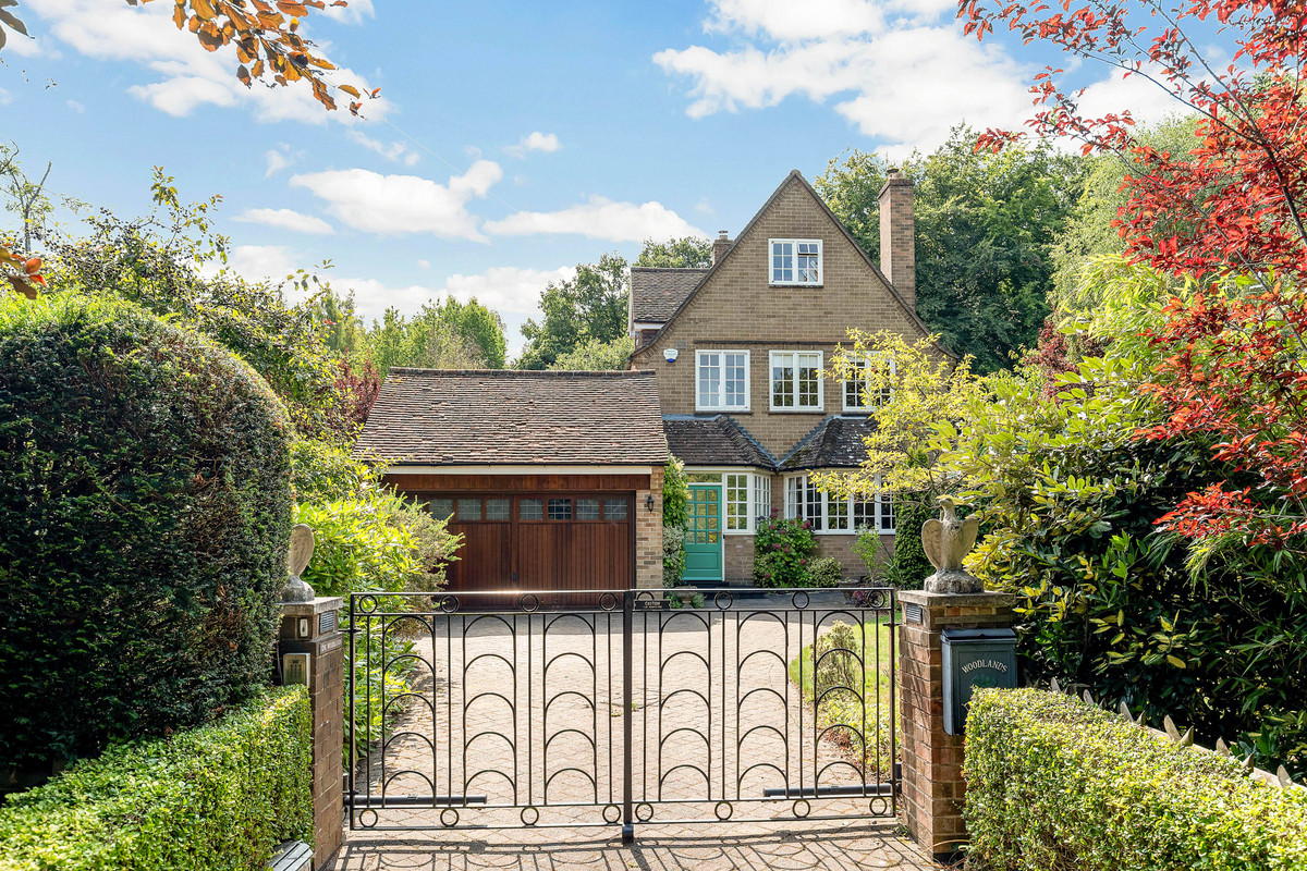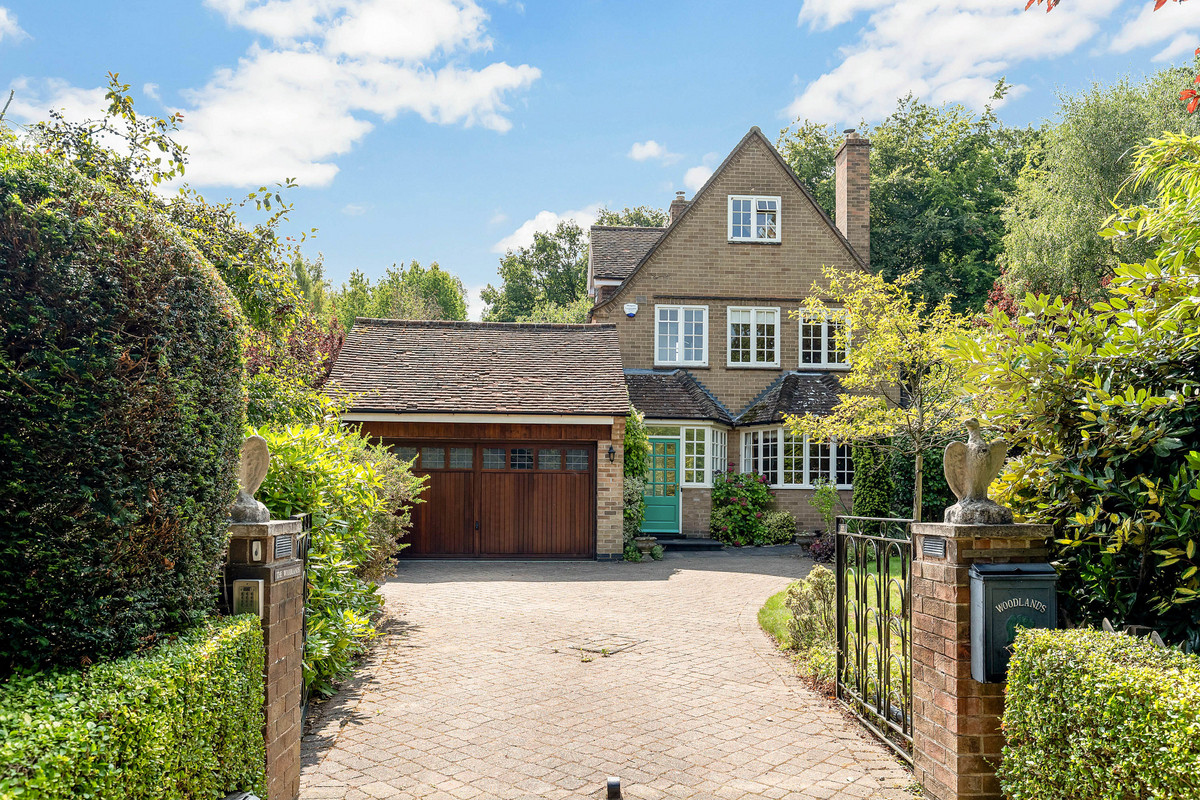The property stands in mature grounds of 0.25 acres in total. Standing central to its plot and well back from the road electric gates open to a generous driveway and provide access to an oversized, integral garage. An established front boundary provides a high degree of privacy.
