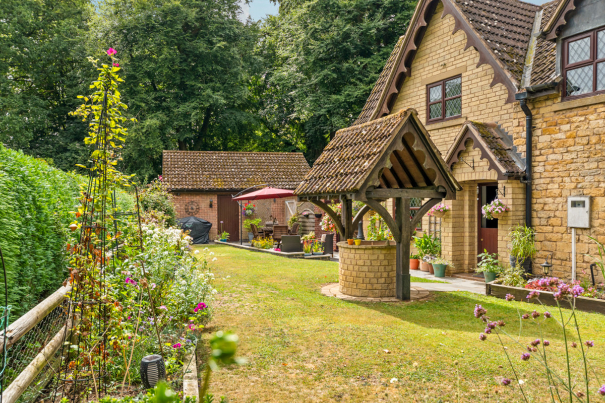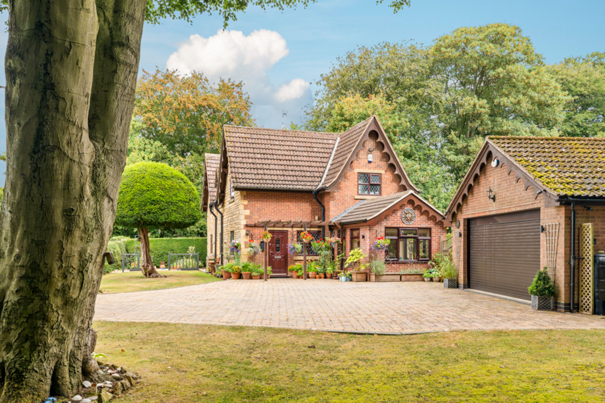 The property is well set back from Melton Road in a mature setting of around 0.21 acres in total. A mature hedge forms the front boundary, and a wooden five bar gate provides access to an extensive, paved driveway with electric car charging point, in-built lighting and in turn leads to the detached double garage. There is an extensive lawned garden with a well is a stand-out feature. An established Yew tree is subject to a tree preservation order and included is a garden shed, open pergola, outside lighting and outside tap. Gated access leads to the rear garden. The rear garden is privately enclosed with hedgerows to the boundaries, flagstone patio, ornamental walls, lawns, raised planters and stocked borders throughout. There is a central feature well with pitch roof canopy over and flagstone pathways.