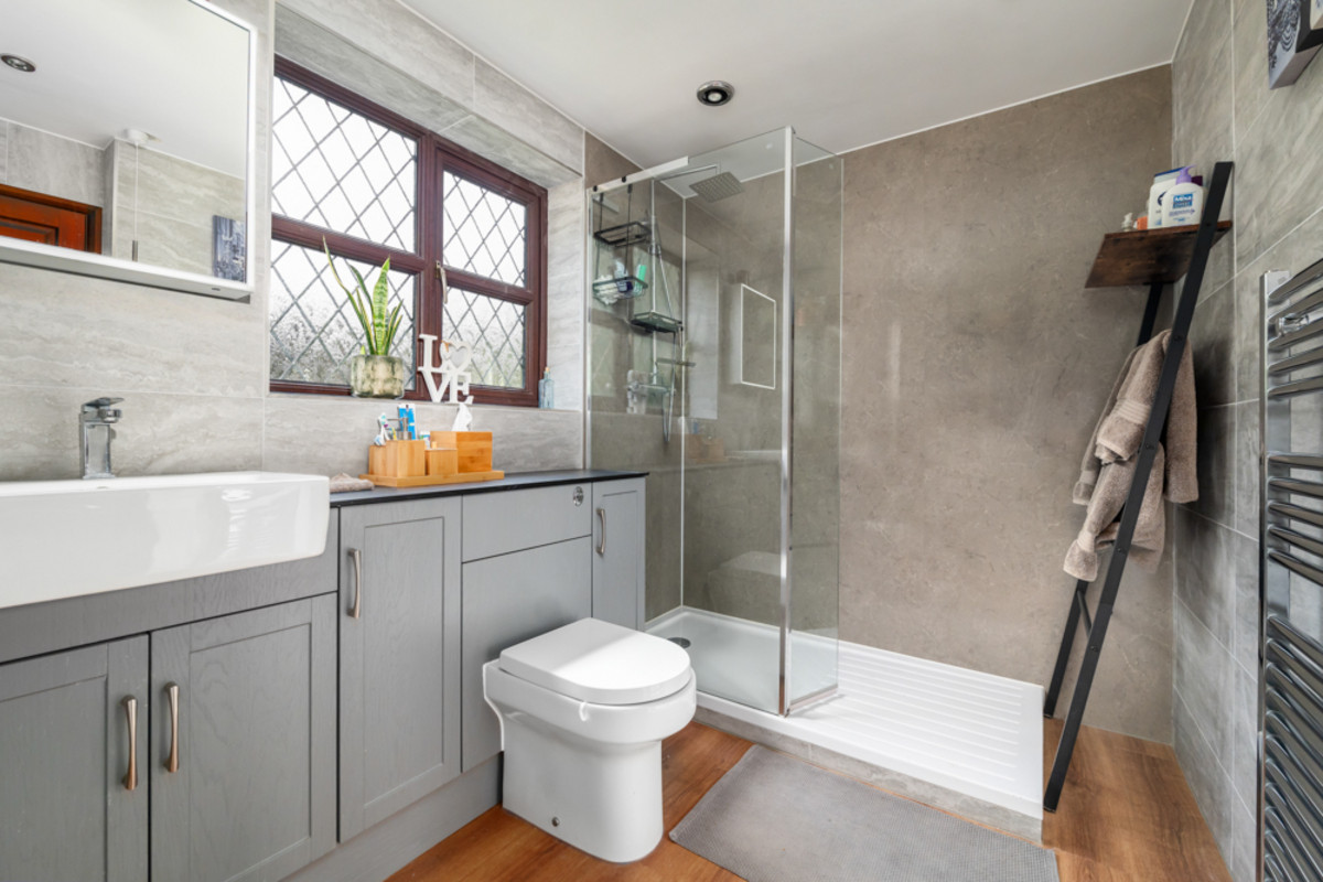A spacious gallery landing with leaded light window to the rear provides access to four good-sized bedrooms and shower Room fitted with three-piece suite including a double shower with drench head and handheld attachment. Bedroom one has built-in bedroom furniture comprising wardrobe, dressing table with drawers and bedside drawers and en-suite bathroom fitted with a white three-piece suite including a corner bath with drench head shower over. Bedroom two and three both enjoy countryside views and bedroom four is currently used as a home office with window to rear garden.
