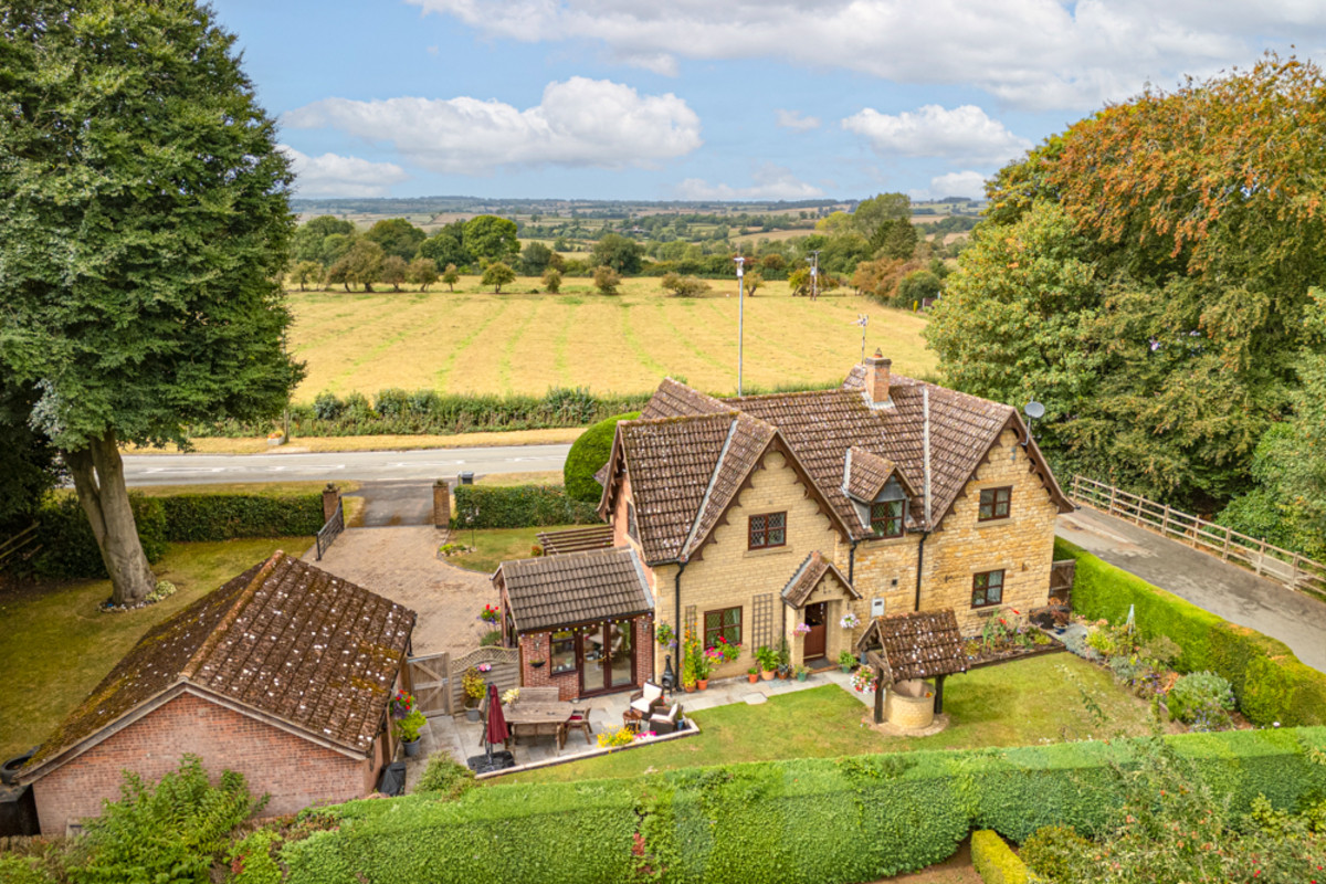 This charming former gatehouse, steeped in nearly 200 years of history, enjoys a mature and picturesque setting. With its striking brick and stone elevations, Yew Tree Lodge has been thoughtfully extended to provide outstanding family accommodation. The ground floor features three elegant reception rooms, a light-filled garden room, a fitted kitchen, and a cloakroom/WC. Upstairs, four generously proportioned bedrooms are complemented by a stylish ensuite bathroom and a separate shower room. The layout of the ground floor also offers excellent flexibility, with scope to create a modern open-plan arrangement if desired. Many of the principal rooms benefit from uninterrupted westerly views across open countryside. Set well back from the road, the property is approached via a generous driveway providing ample parking and access to a detached double garage. Beautifully maintained private gardens, mainly laid to lawn, wrap around the house, offering both seclusion and space.