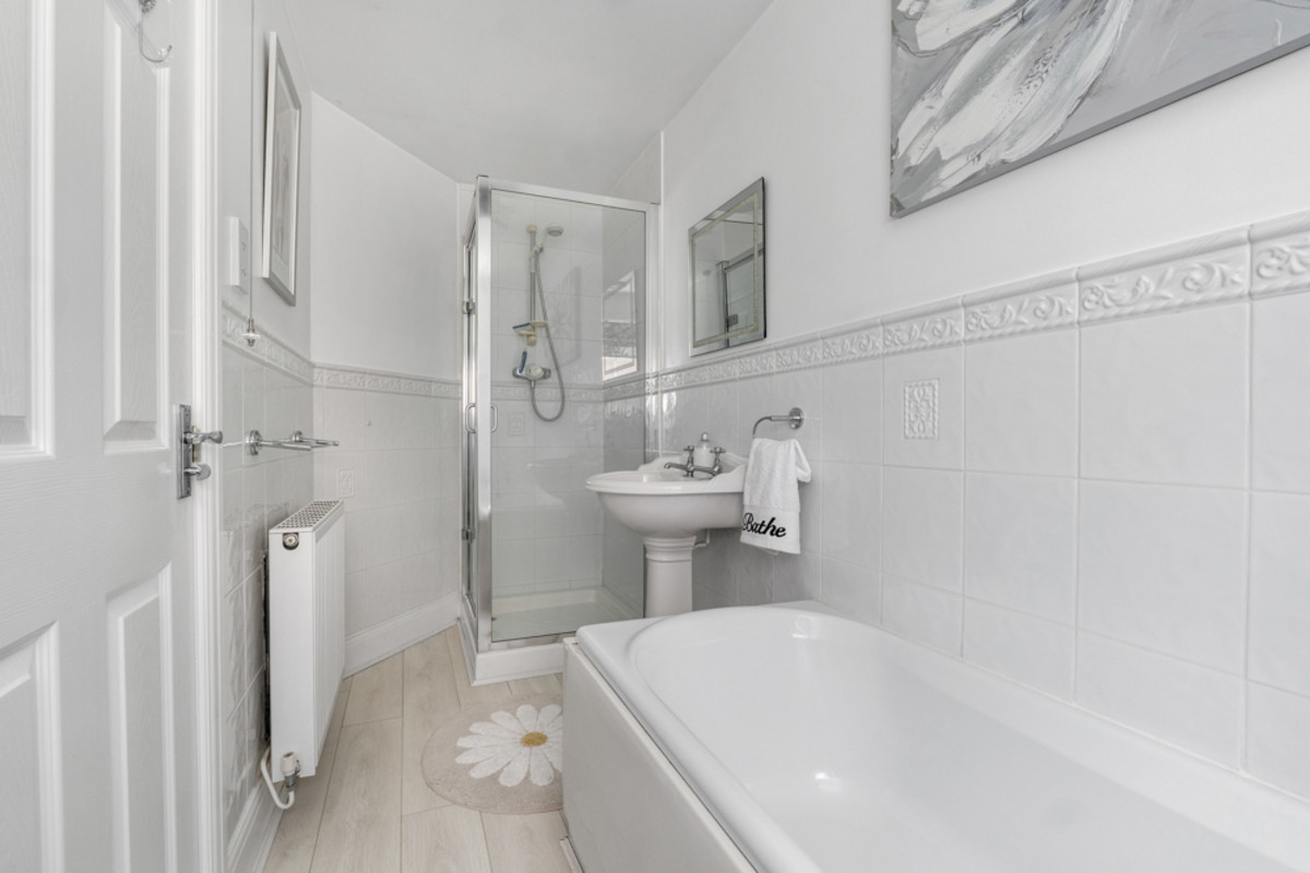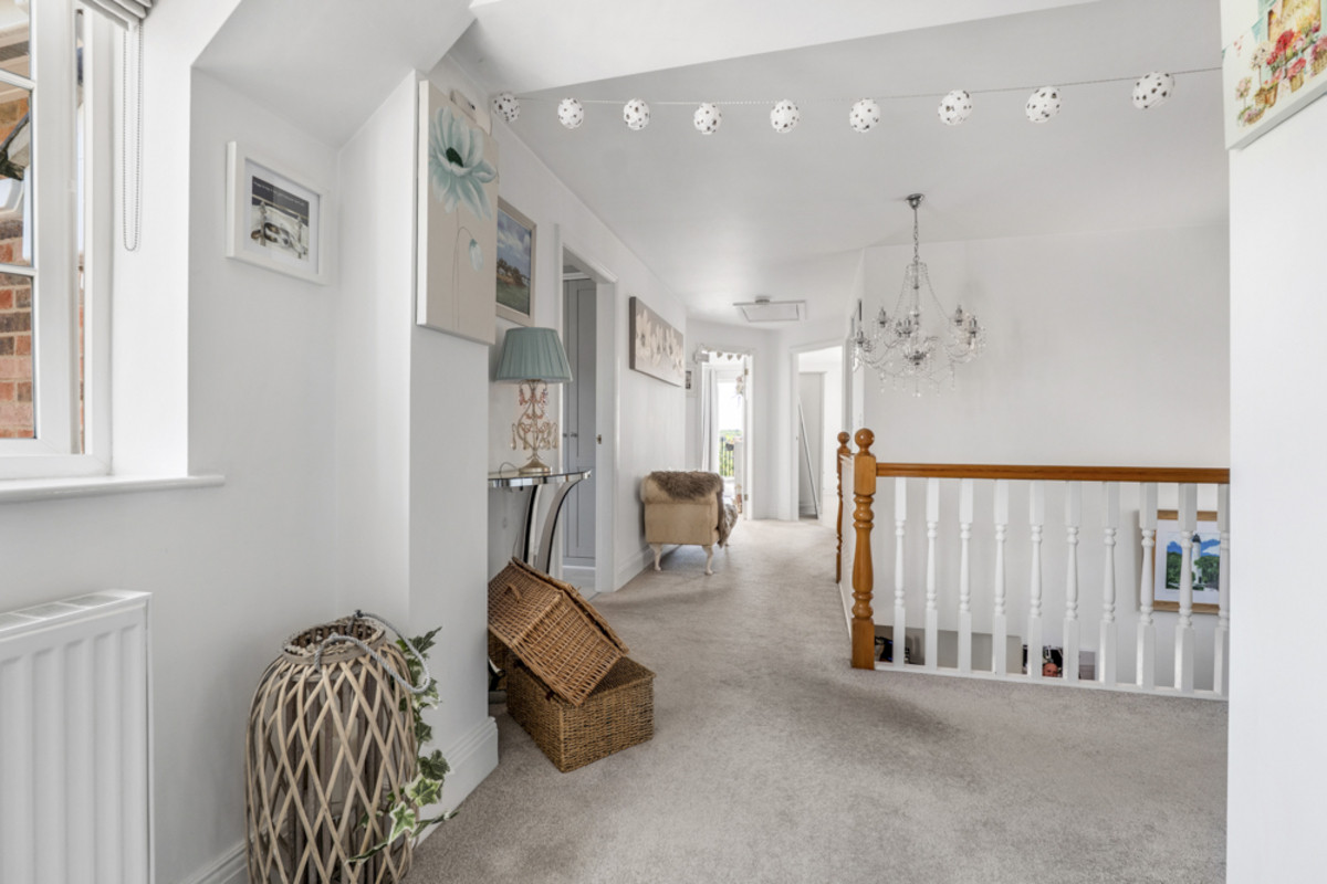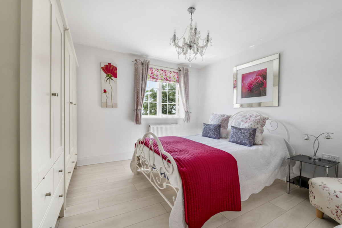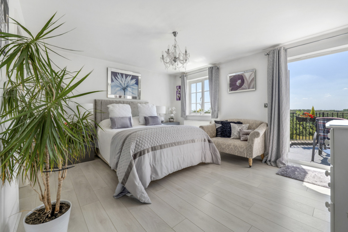 A staircase from the entrance hallway rises to a spacious first-floor landing, with access to all four double bedrooms and the family bathroom. Bedrooms two, three, and four are all generously proportioned, while the standout principal bedroom benefits from its own private en-suite shower room and French doors that open onto a balcony; perfectly positioned to take in the sweeping countryside views. A stylish four-piece family bathroom serves the remaining bedrooms.