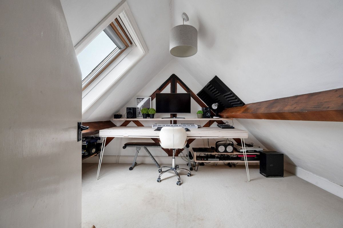 On the second floor is a large central landing with access to useful storage and two double bedrooms both with Velux windows to rear.