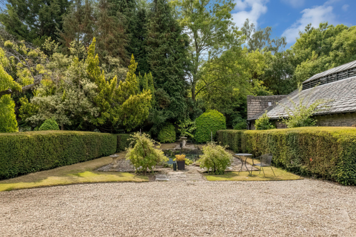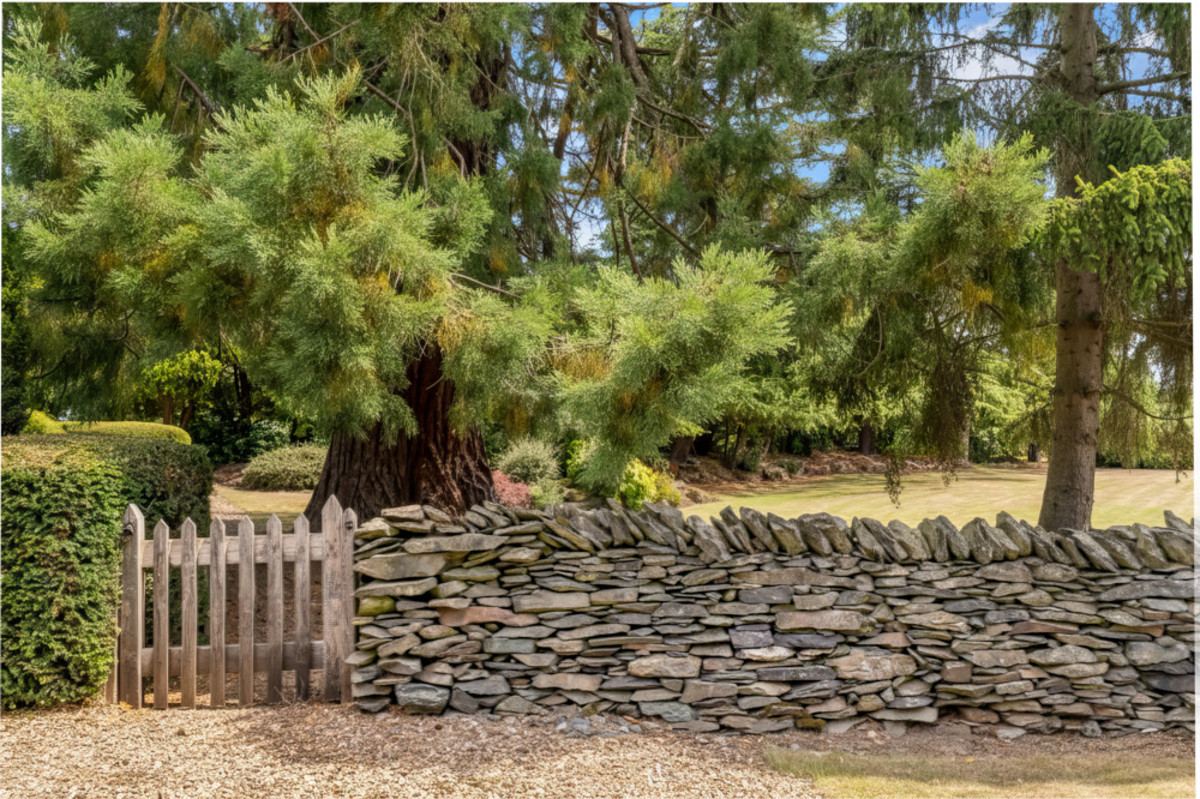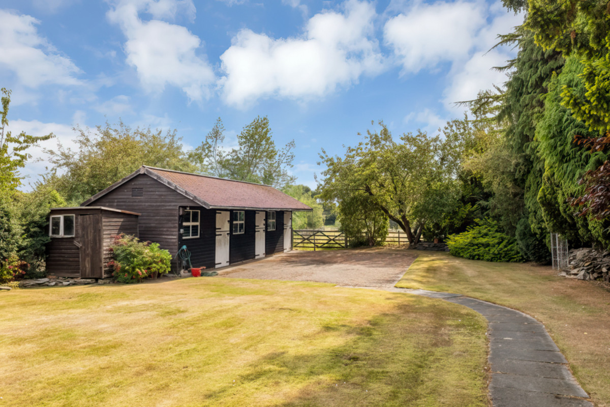 Hallgates is set within impressive grounds of approximately 1.82 acres. Approached through electric wrought-iron gates, a sweeping gravel driveway leads to a generous turning circle at the front of the property, providing extensive parking and access to an oversized double garage. The beautifully landscaped gardens, which envelop the house on three sides, are a true highlight of the property. Mature specimen trees, dry-stone walls, and thoughtfully designed areas create both interest and privacy, while cobbled patios and wide lawns offer inviting spaces for outdoor enjoyment. Beyond the gardens lie three interconnecting paddocks, together with three stables—an excellent arrangement for those with equestrian interests or a desire for additional land use.