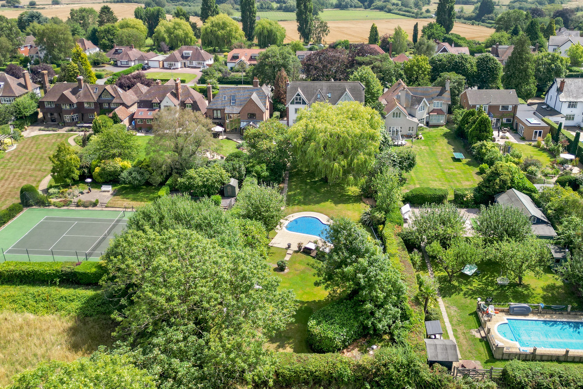 Enjoying northwest-facing views towards the picturesque Bradgate Park, this home offers an idyllic setting with mature gardens, a wrap-around terrace, and an inviting outdoor heated swimming pool, all anchored by a majestic Willow tree. The heart of the home is the impressive open-plan living kitchen, flooded with natural light from two large roof lanterns and opening through bifold doors onto the garden. A log-burning fire within the kitchen is a cosy feature and in addition are three further reception rooms including a media room/home cinema. On the first and second floors are a gym and five large bedrooms all with their own ensuite bathroom/shower room. Complementing the main house is a newly built detached double garage, store with a guest suite above with ensuite, offering excellent annexe potential.