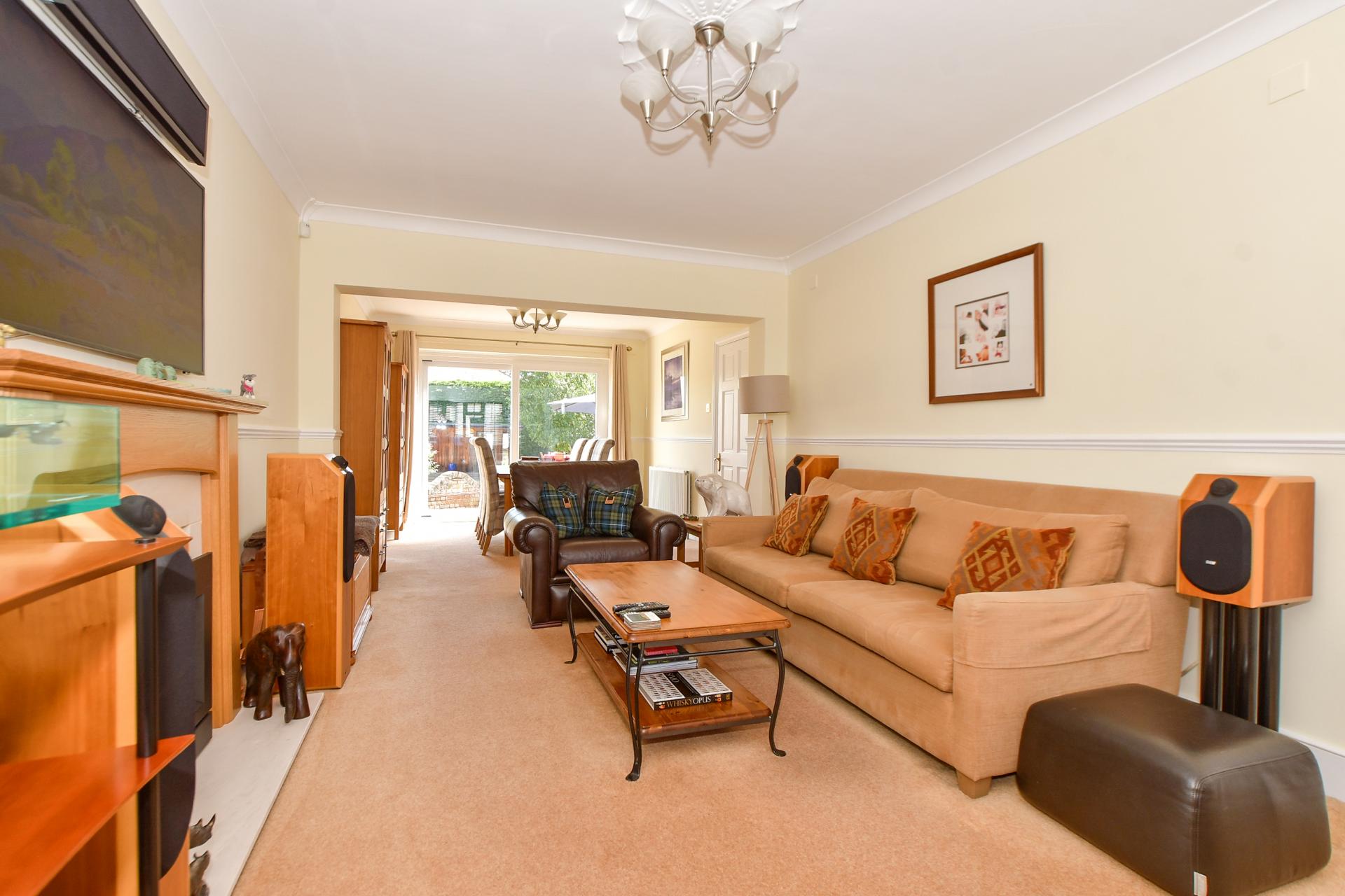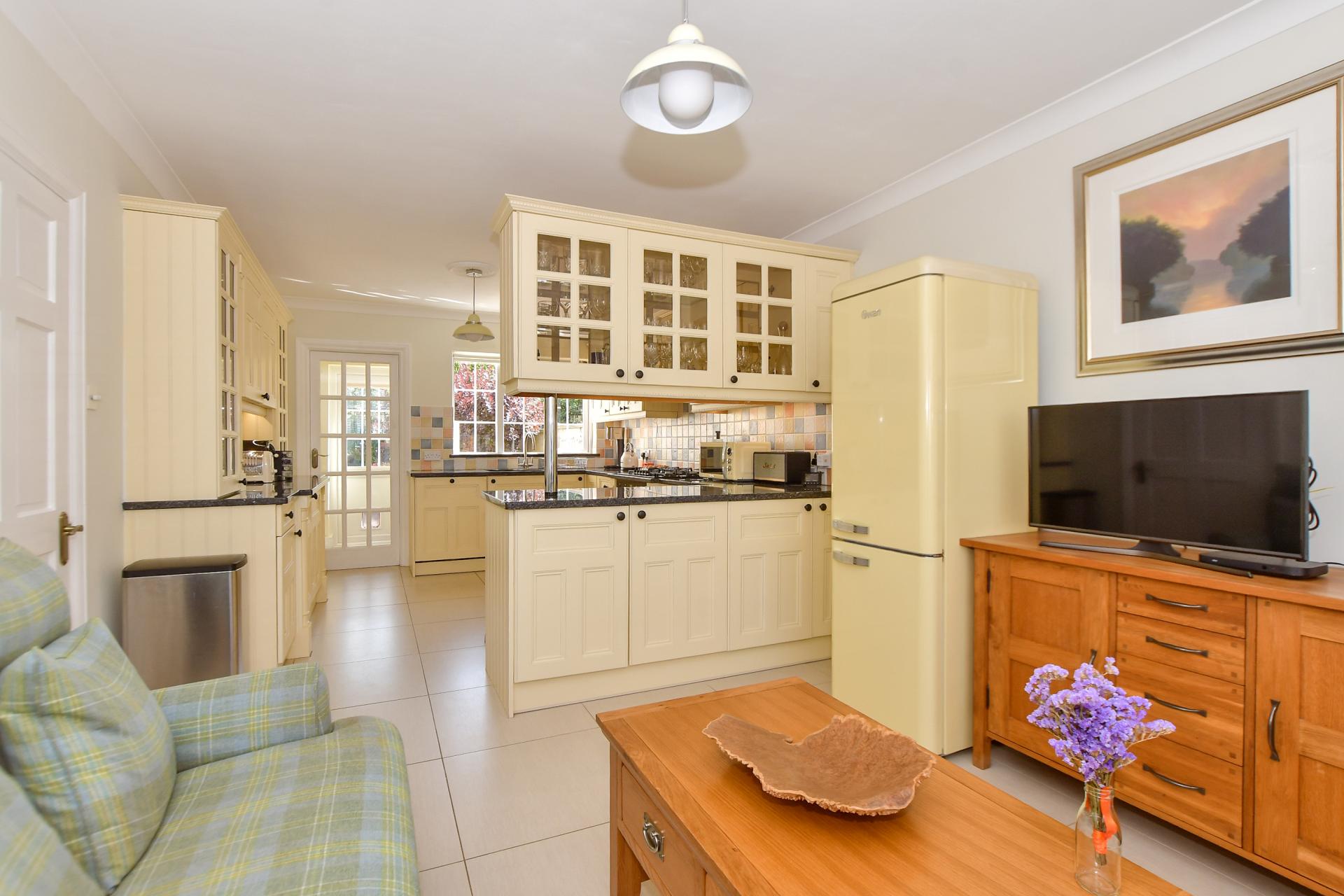 The house boasts a spacious lounge with a feature fireplace and bay window to the front, effortlessly flowing into the open-plan dining area with amazing views over the private garden. In addition to generous storage throughout, the property benefits from a utility cupboard to keep some of the white goods neatly out of the kitchen, as well as a convenient downstairs shower room. The kitchen/breakfast room includes a large cooker with a gas hob and a wide variety of attractive cream-coloured shaker-style units with granite worktops, leaving plenty of space for a good-sized breakfast table and chairs. The property also features a separate guest room (currently used as a study), which has previously been used as a fourth bedroom, offering excellent flexibility for families, guests, or those working from home.