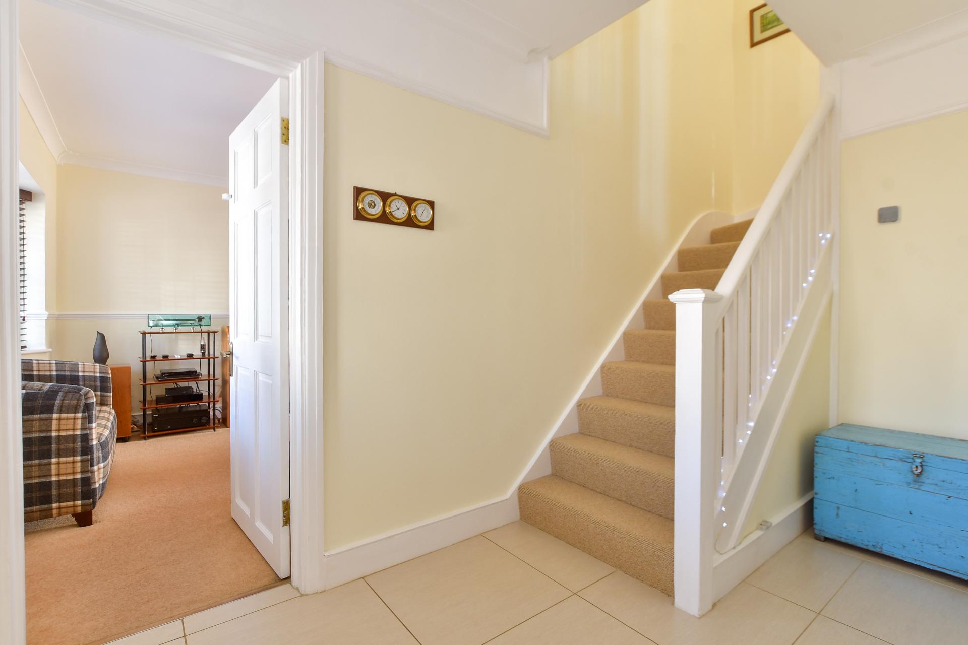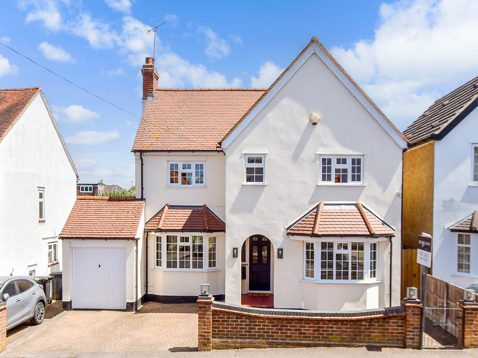 Located in a beautiful tree lined street is this four bedroom detached house that is being sold chain free and immediately available. Built in the 1920s, it is approached via a block paved driveway providing off road parking for two/three cars and leads to the garage/storage area and the front entrance. It is at this stage you can admire the external appeal of the house with its attractive cream elevations, chimneystack, multi-pane casement, bay windows and dual arched porch filled with a charming front door incorporating stained glass inserts that leads into a spacious hallway.