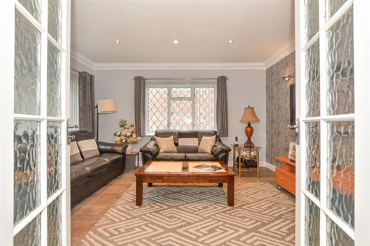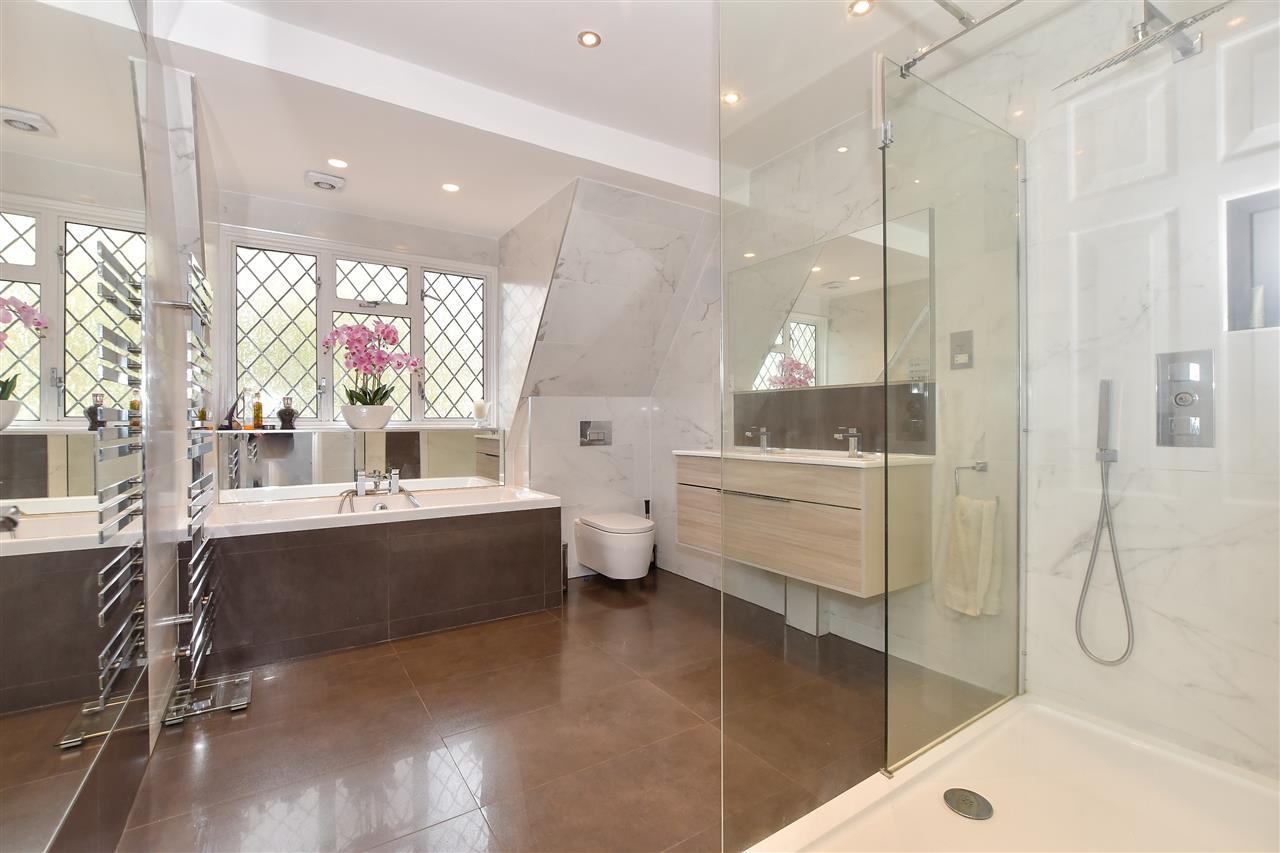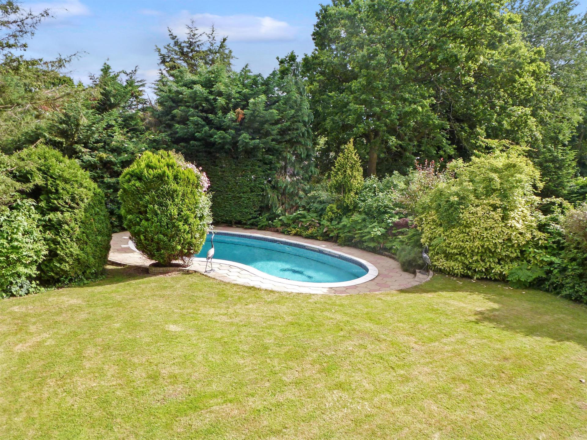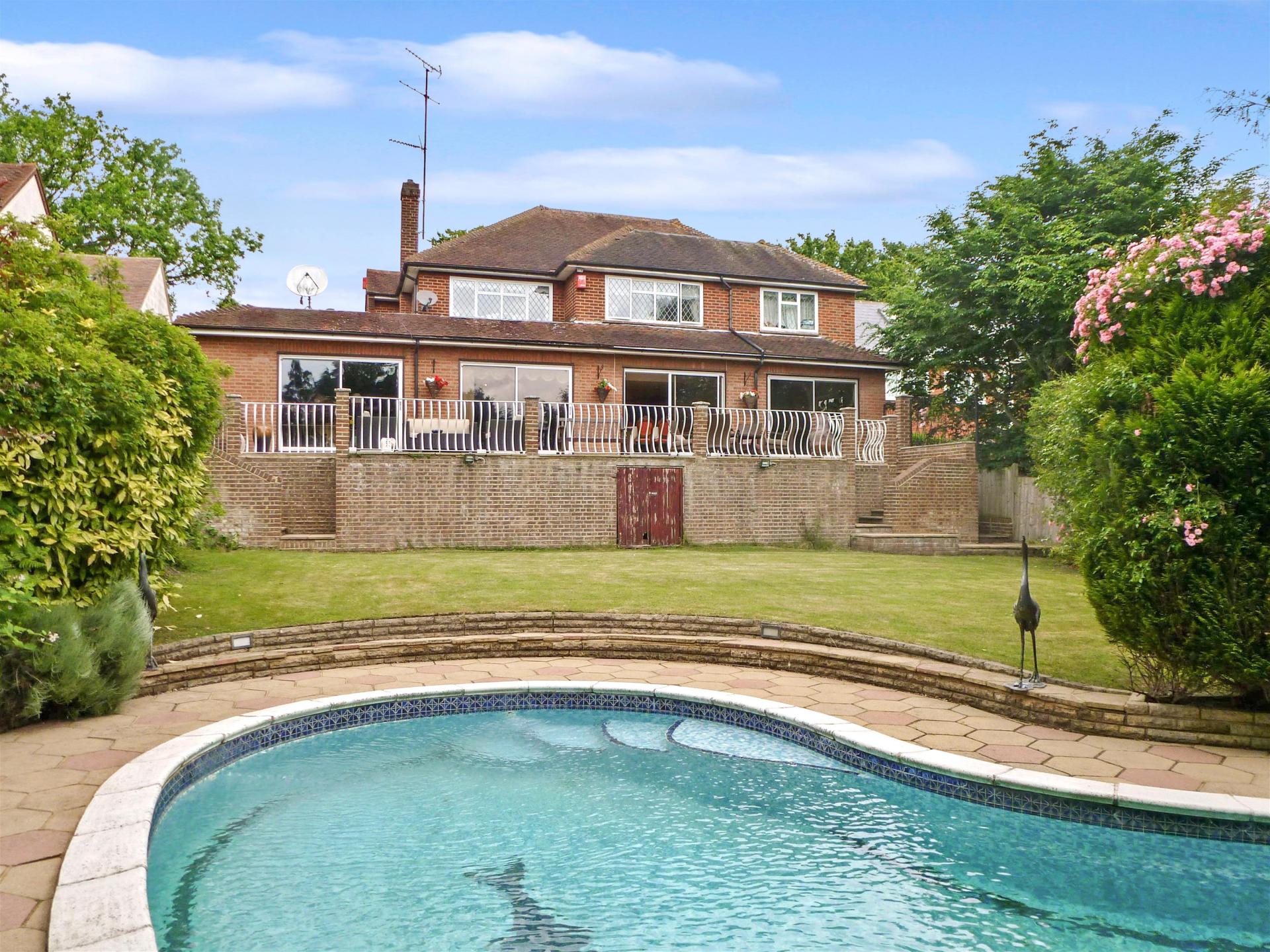 This impressive, detached house is situated in an elevated position on the prestigious Stradbroke Drive, Chigwell. It is being sold chain free and includes a swimming pool, plenty of flexible accommodation and the potential to extend, subject to planning permissions. There is a spacious block paved driveway that surrounds trees and a large shrub bed and an integral double garage with patio doors to the rear terrace that overlooks the rear garden.