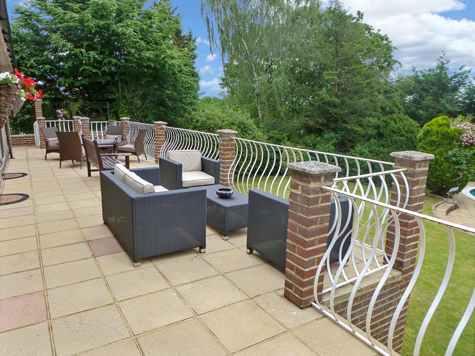 What we particularly like about the house is the rear garden, it provides a sense of privacy, being enclosed by mature shrubs and trees. A heated swimming pool is the answer to cooling off on a hot summer’s day and it provides endless hours of entertainment for the children during the school summer holidays. Whilst for adults there is a spacious raised balcony, the ideal spot to sit and relax with a glass of wine whilst keeping a watch over the children.