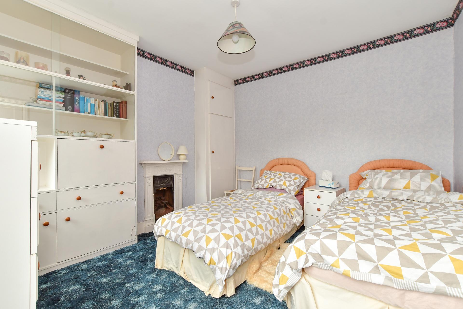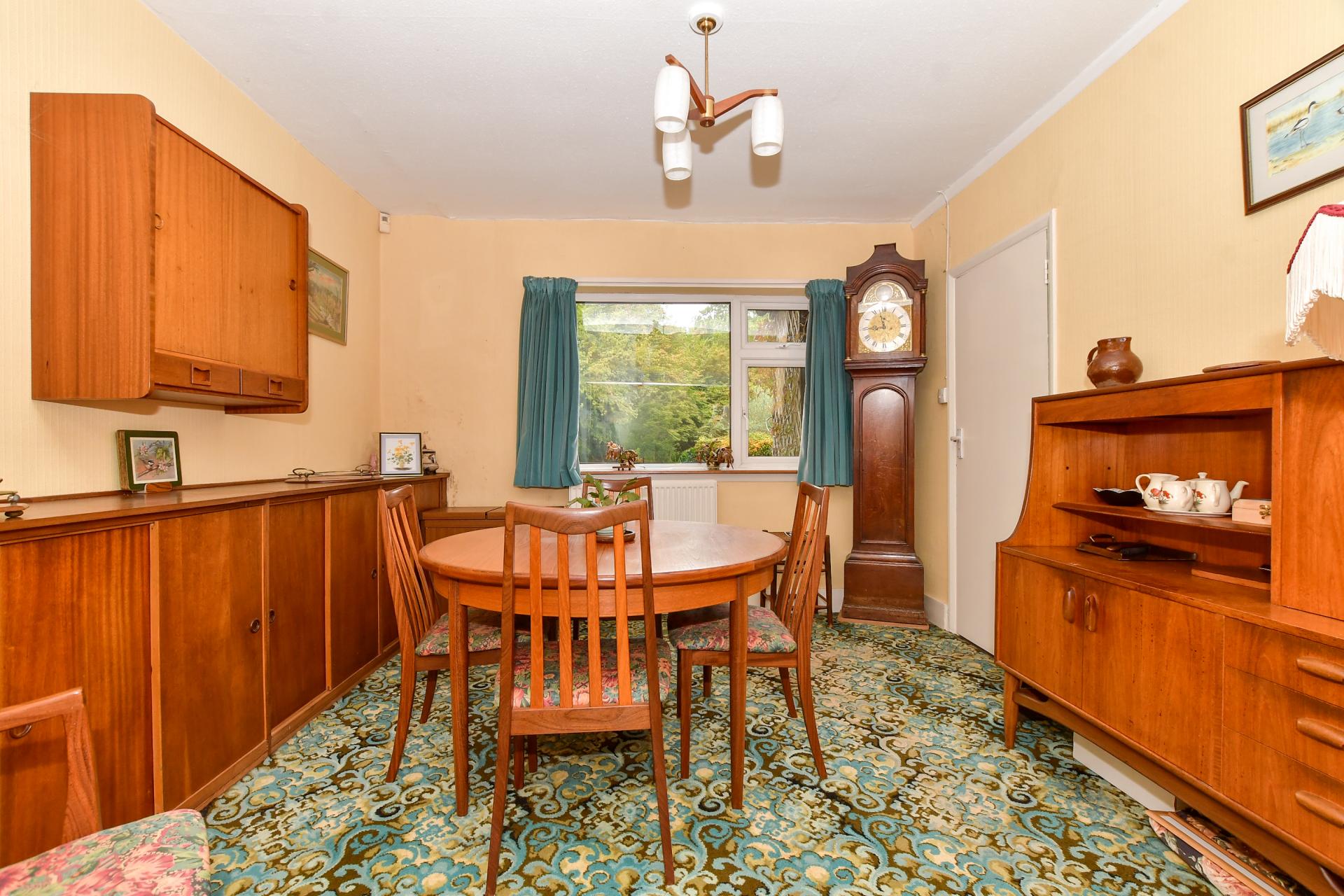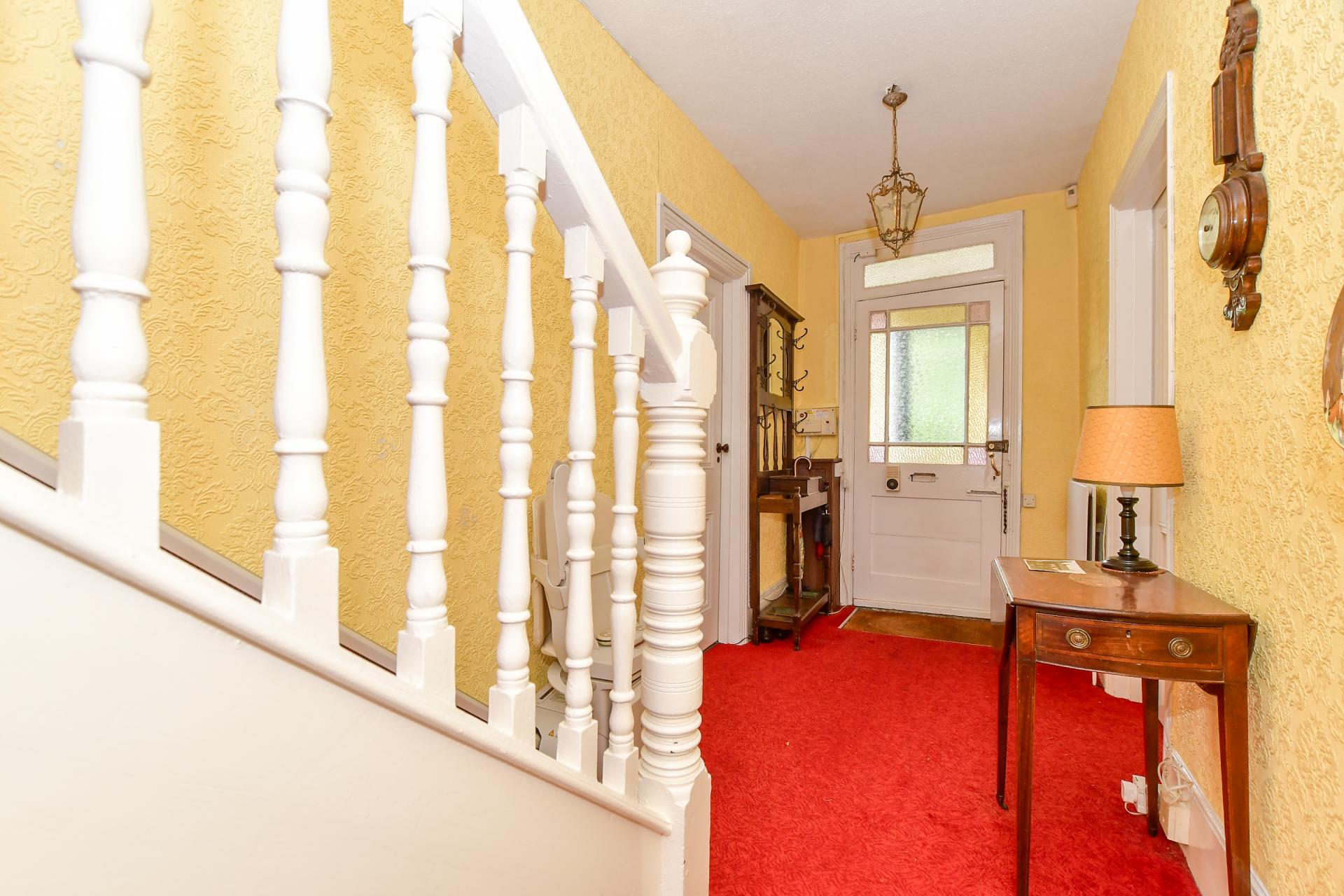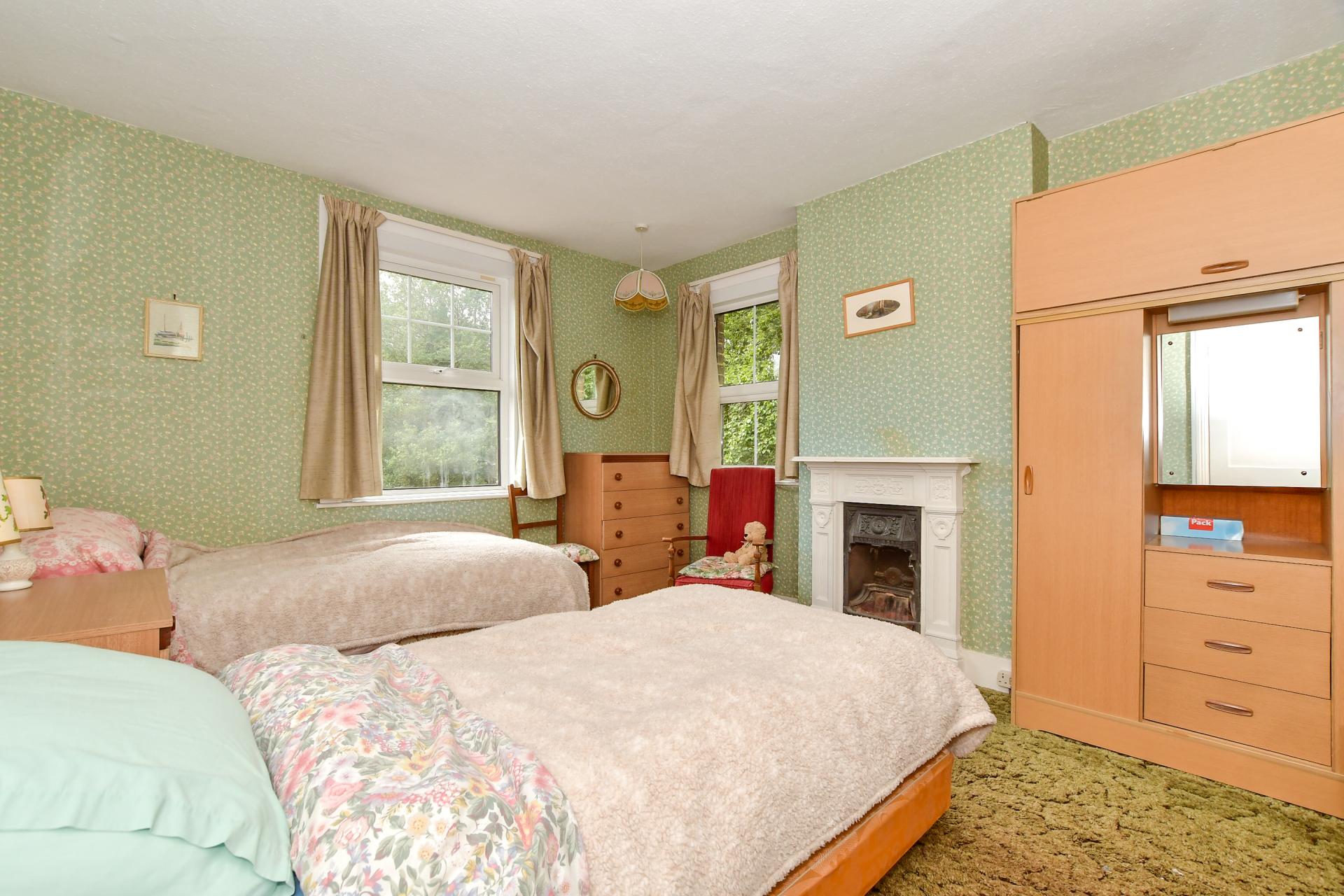 There is a well-proportioned family room with a bay window and an original brick fireplace, while a similar sized lounge also includes a bay window and a ragstone fireplace with a white painted surround as a focal point. However this room has a very wide archway to the dining room creating a very spacious dual aspect overall area, which is ideal for entertaining. There is also a cloakroom and a good-sized kitchen featuring units with stand-alone appliances, a door to the rear garden and is large enough for a table and chairs.
