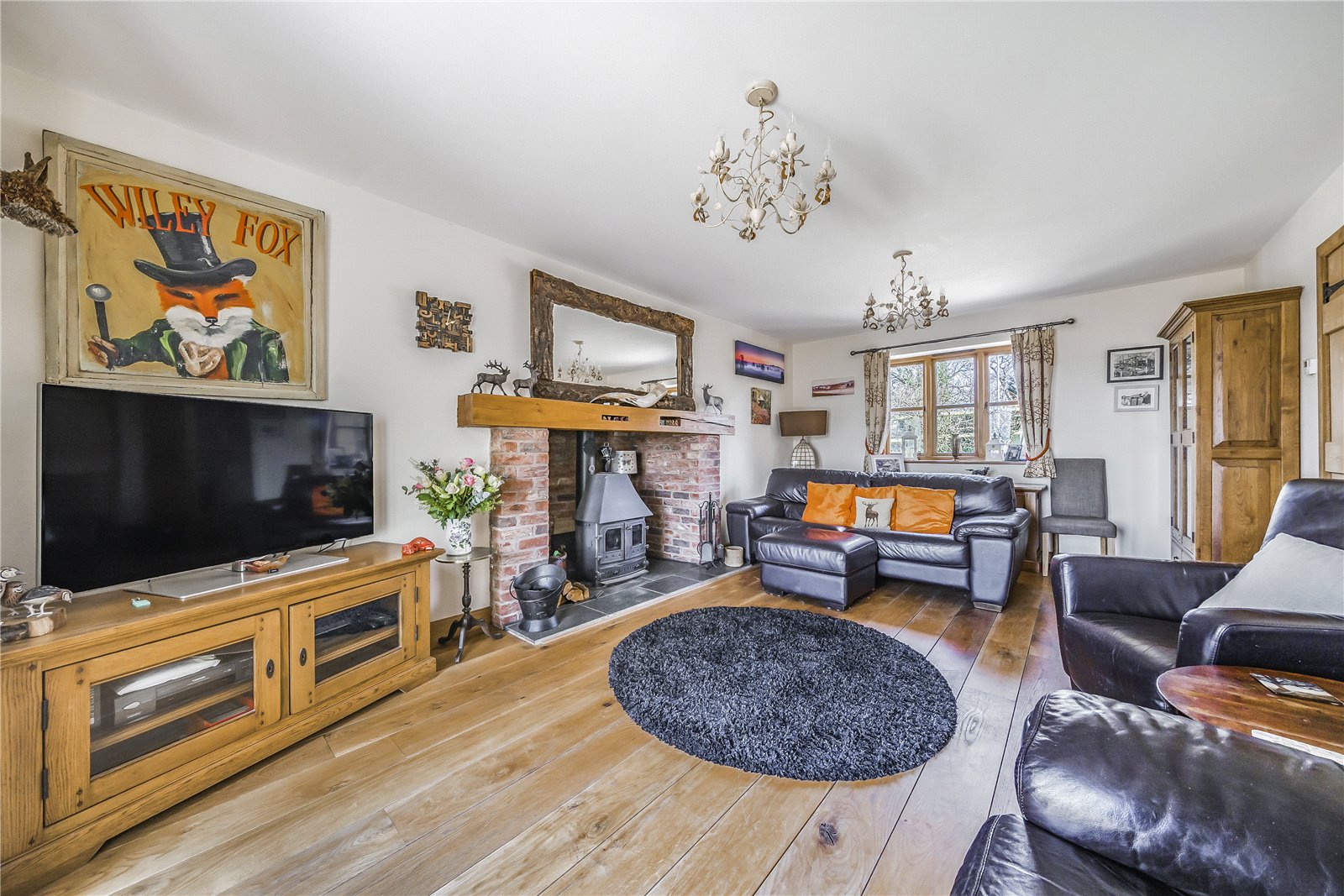 An oak Porch and entrance door open to the Reception Hall. With tiled floor and oak staircase rising to the first floor with useful under-stairs cupboard.The spacious Sitting Room has an oak floor, a window to the front and double glazed doors opening to the rear enjoying far reaching views. The focal point of the room is the brick fireplace with wooden lintel and a wood burning stove on a slate hearth.
