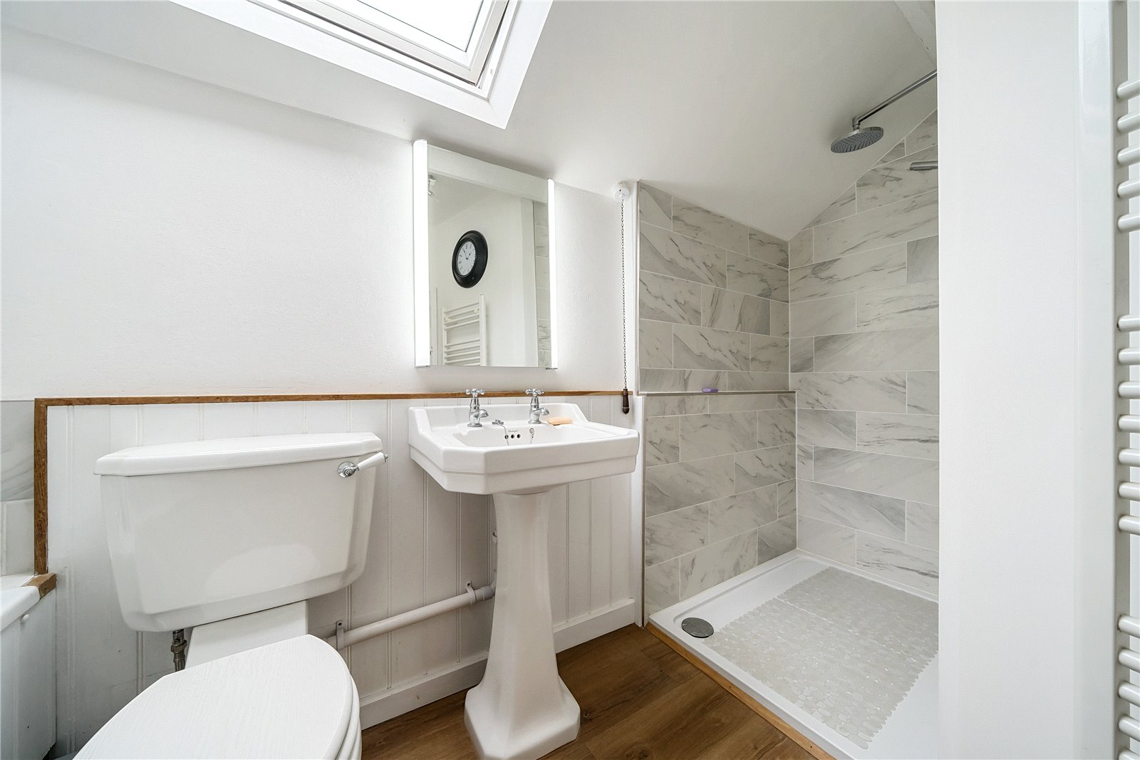 On the first floor is a spacious Landing with double glazed window overlooking the rear gardens, an Inner Landing with double glazed window to rear opens to the Bathroom. Appointed with a white suite of bath with central taps and shower attachment over, WC, wash basin and fully tiled walk in shower cubicle. Wood effect vinyl flooring and double glazed skylight. Bedroom One is a pretty room with double glazed window overlooking the rear Gardens. Off the main Landing Bedroom Two is another good sized Double room with double glazed window to side enjoying lovely views.