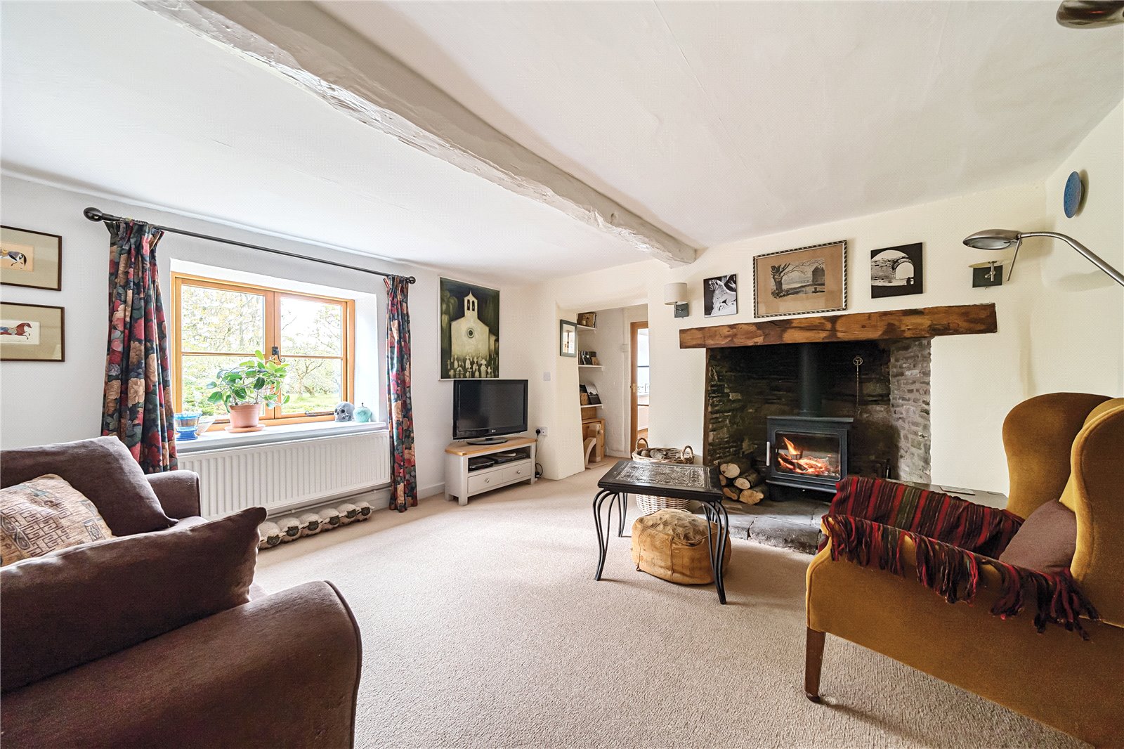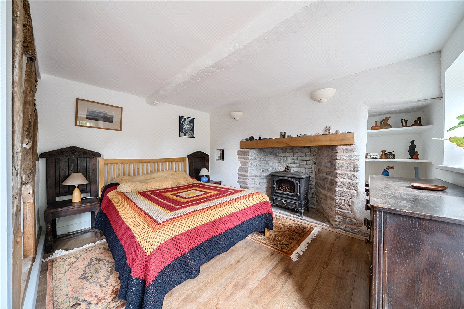 A pretty Porch with oak entrance doors opens to a Reception Hall with ceramic tiled floor, vaulted ceiling and Cloakroom off with tiled floor, double glazed window to side, WC and wash basin. There would be room for a shower if required. Also off the Reception Hall is a Utility Room, with tiled floor, range of wall and base units, inset sink unit, space for appliances and space and plumbing for washing machine. A double glazed window overlooks the front courtyard.The Inner Hall has a staircase rising to the first floor and double doors open to a spacious and light and airy Reception Room/Bedroom Three. With wood effect flooring, double glazed paned door and windows to rear, stone fireplace with original bread oven and recessed shelving.The cosy Sitting Room has a stone inglenook fireplace with wood burning stove on stone hearth and a double glazed window overlooking the rear gardens.