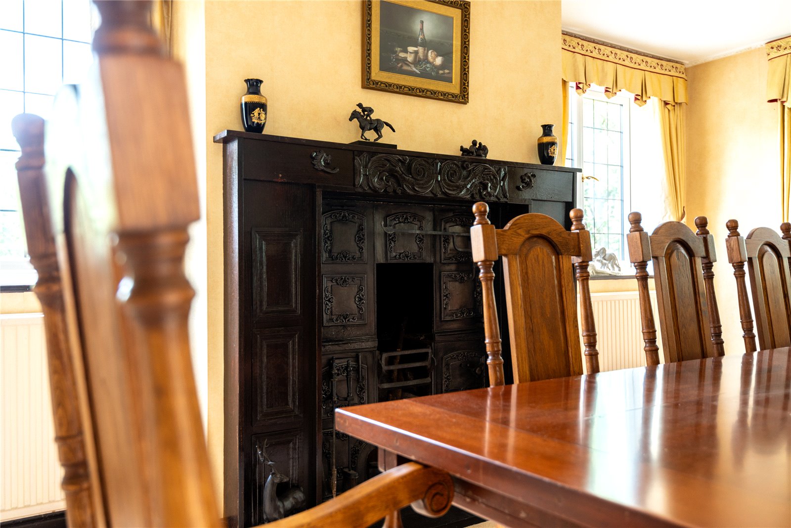 Feature oak fireplace housing the working bakers oven. Ornate ceiling rose and cornice. China Cupboard. French doors opening to the gardens