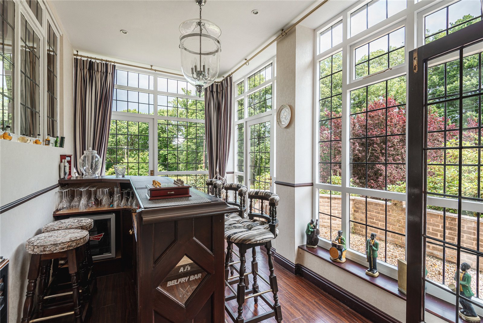 With an original AJ's Belfry bar with sink. Dado rail. Views over the garden. A fabulous addition for entertaining