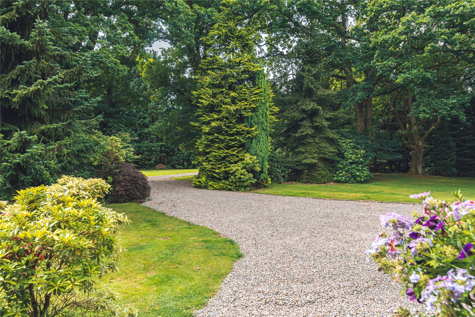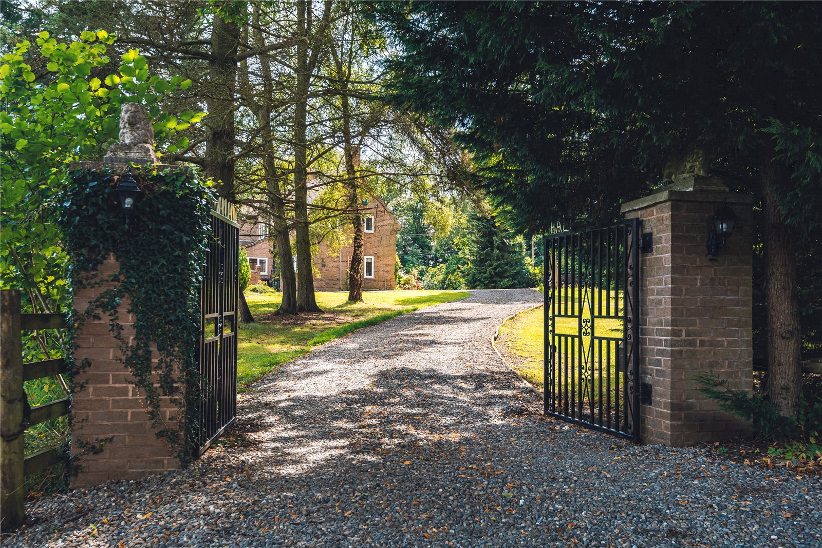 Approached through wrought iron gates and with a huge benefit of two entrances, opening on to the gravelled forecourtThe gardens equate to approx. 2.2 acres, offering an incredibly high degree of privacy and totally nestled within your own grounds. Predominantly laid to lawn, the formal gardens offer a vast amount of versatility, from the keen gardener, an adventure playground for children, or perhaps one wanting a piece of the good life and play host to a menagerie of animals. A detached Double Garage with an adjoining Workshop provides fantastic extra storage, or even perhaps for one wanting to house a classic car, etc