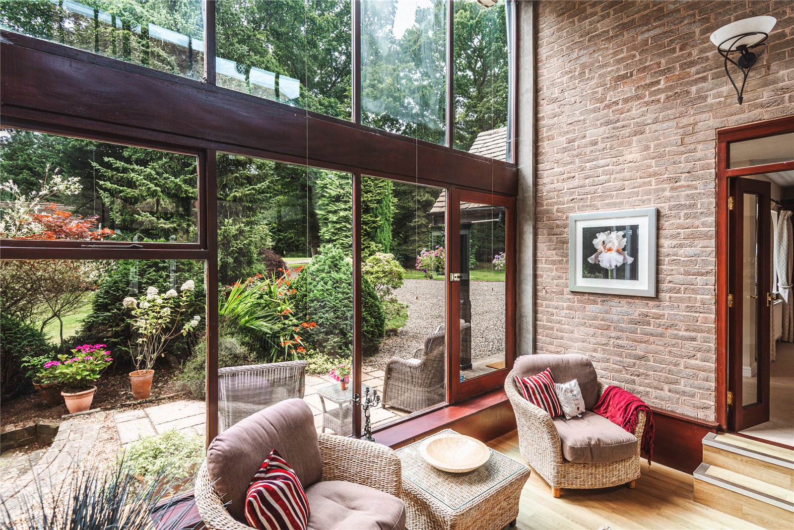As you step into the large reception hall you have an immediate sense of the size and welcoming ambience of the house, where the rooms combine comfort and sophistication. The kitchen is the busy daily hub, and the snug provides the perfect place to relax and watch TV; The owners redesigned the atrium which, with its tall windows, creates a lovely, chic space within the house, and is the perfect setting for the huge annual Christmas tree.