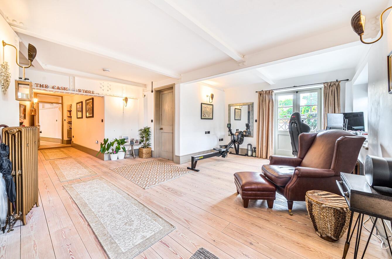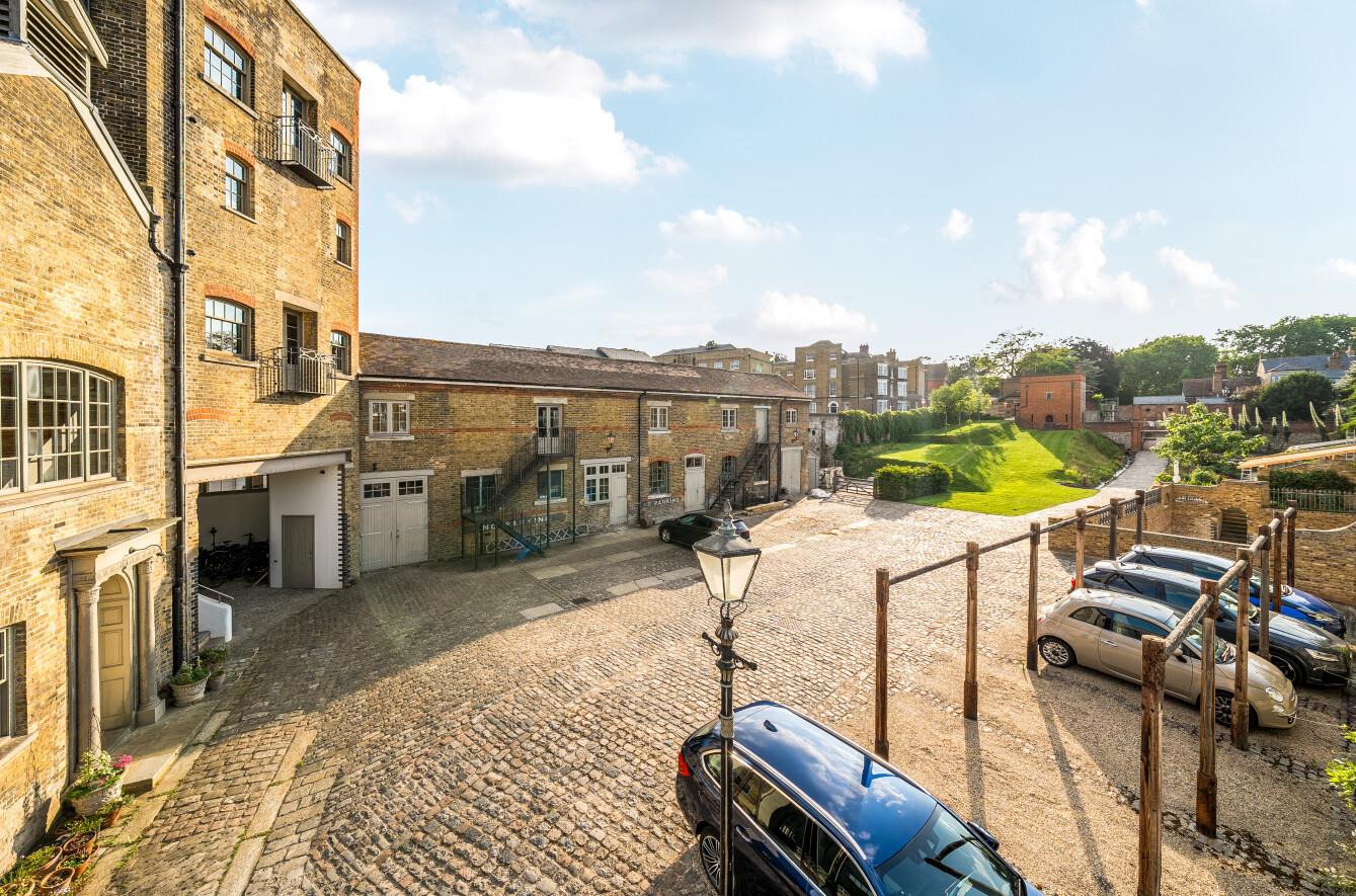 Outside, a private, wrap-around courtyard garden forms a tranquil oasis, ideal for alfresco dining, morning coffee, or an evening glass of wine. This inviting space is further complemented by beautifully landscaped communal gardens, all set within the cobbled charm of the former brewery's courtyard, where two allocated parking spaces complete the picture.