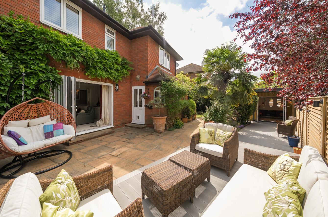 Handcrafted contemporary kitchen, dining room, sitting room, study. Two luxurious en-suites and family bathroom. Beautifully presented gardens. Substantial garden room, multifunctional - office, gym, cinema room, lounge. Elegant stylish interiors, bi-folding door onto garden. Desirable, historic village location, walking distance to train station. Highly regarded schooling options. Convenient access to a range of road & rail networks.