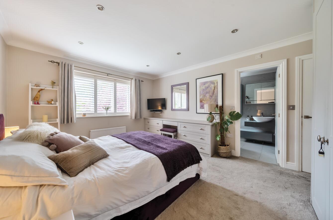 Ascend the attractive staircase to a first floor where quality and attention to detail continues. The principal bedroom serves as a luxurious sanctuary, complete with fitted wardrobes and a sleek en-suite. Bedroom two also benefits from its own en-suite, equally well-appointed. Bedrooms three and four are served by a stylish family bathroom featuring a decadent freestanding pebble bath. Bedroom four is currently arranged as a dressing room, with custom-fitted wardrobes, but could easily be returned to its original use as a bedroom if desired.