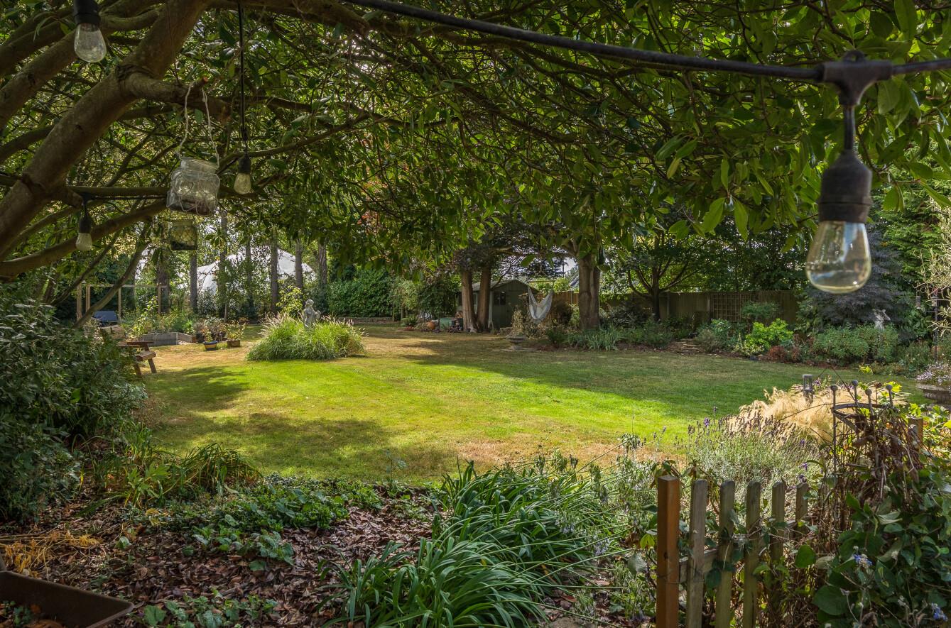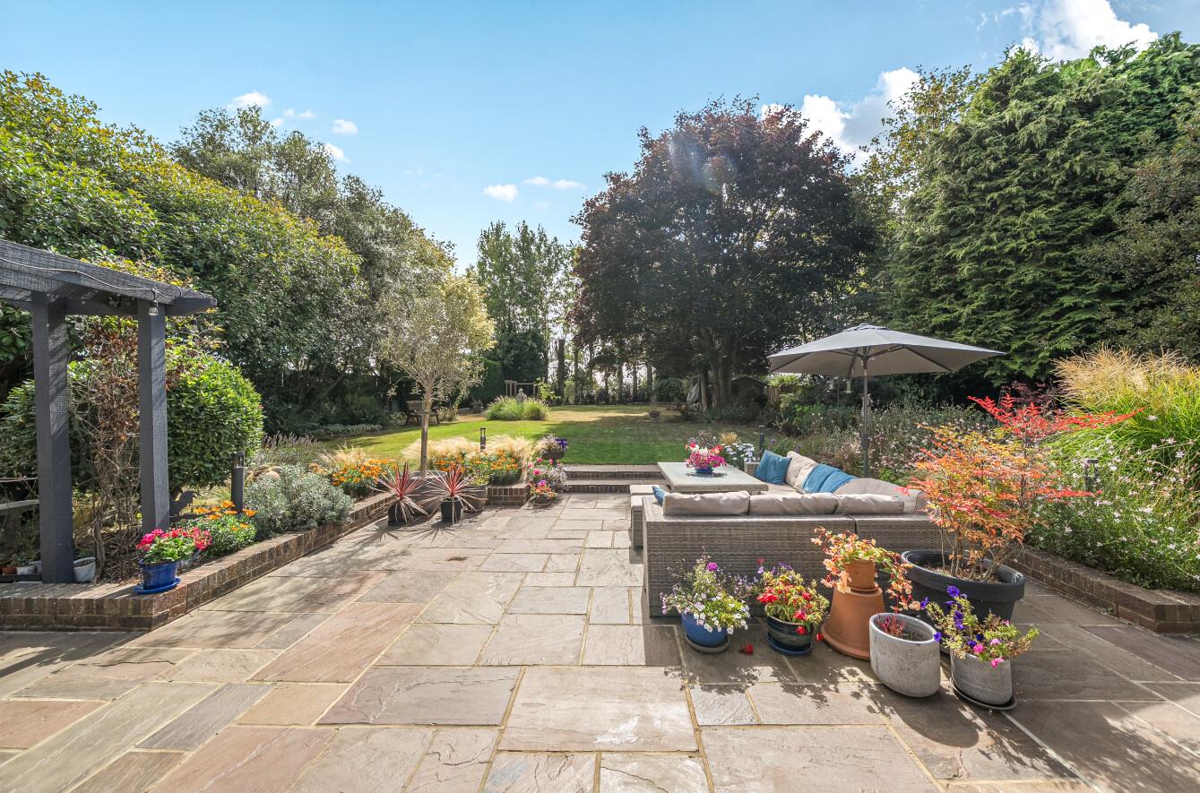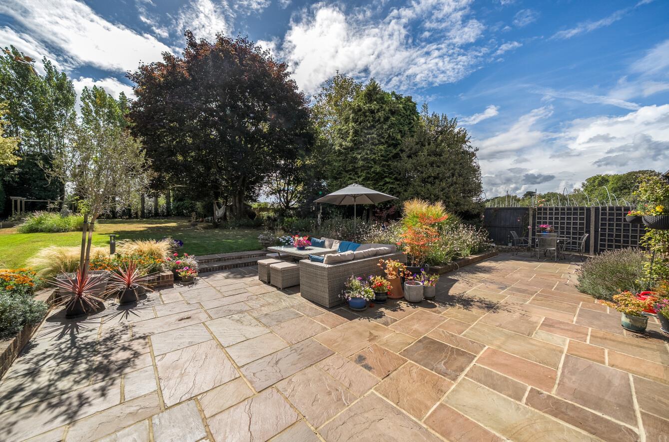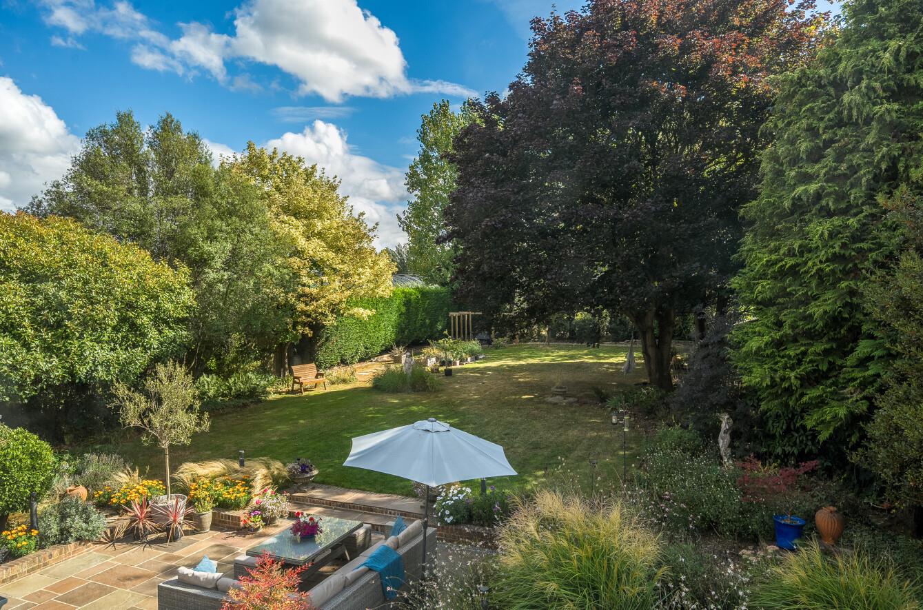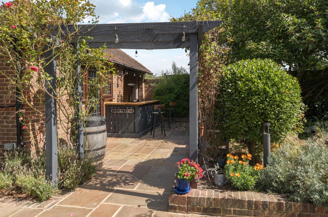 Outside, the gardens are simply enchanting. Extending to around one third of an acre, they offer sweeping lawns, mature trees, and beautifully tended borders. The expansive terrace is made for gatherings, complete with an outdoor bar for summer evenings spent with friends, watching the sun set over the fields. In winter, the landscape provides a serene backdrop for cosy evenings indoors by the fire.