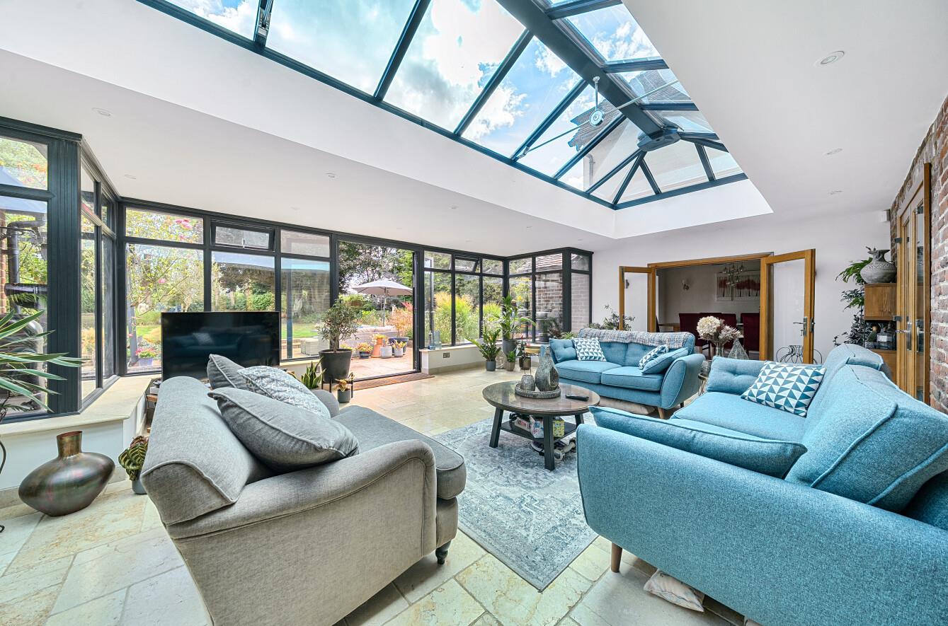 Inside, the home has been thoughtfully designed for both family life and entertaining. The welcoming lobby opens to a gourmet kitchen/breakfast room. The impressive 33ft sitting/dining room, with its generous proportions and dual aspect, is the perfect backdrop for celebrations, while the adjoining orangery invites the outdoors in - a sun-drenched space that flows seamlessly into the garden on summer days. For quieter moments, there's a versatile office/spa room and a sun room linking through to the utility and dog room, with direct access to the double garage.